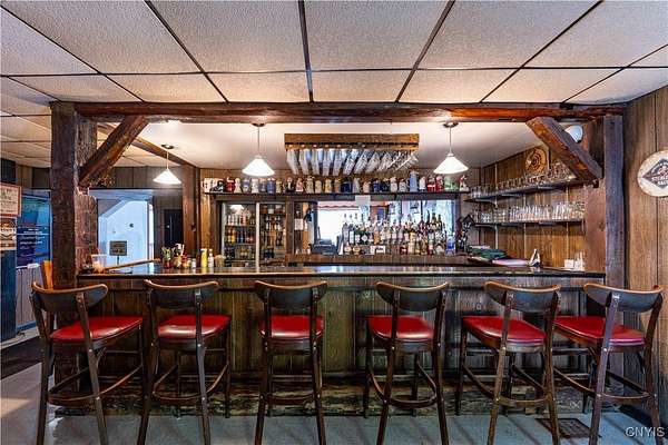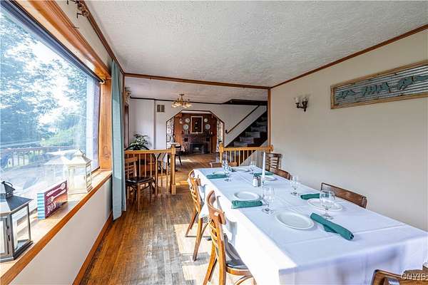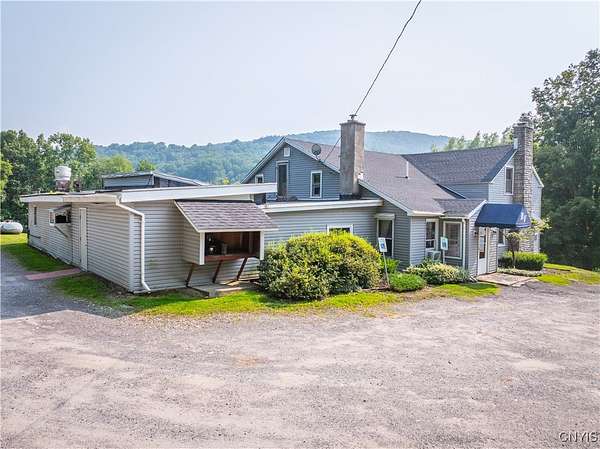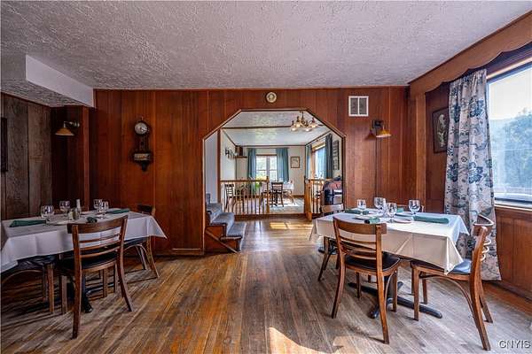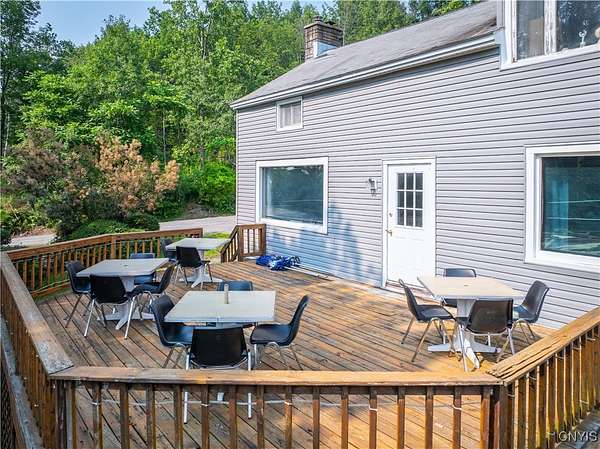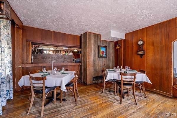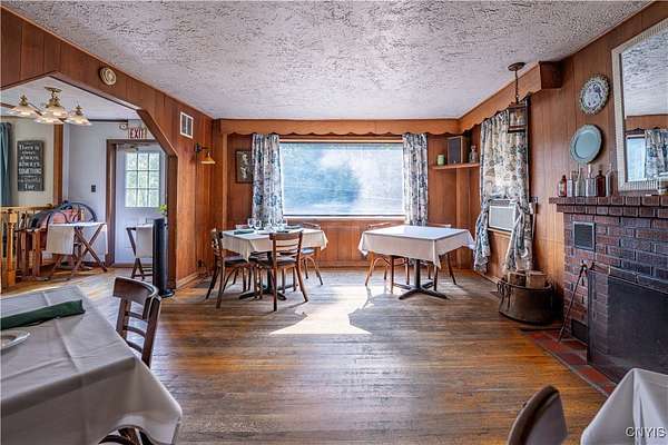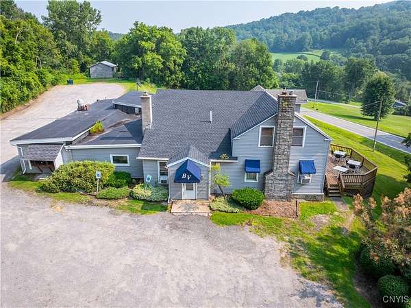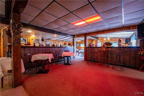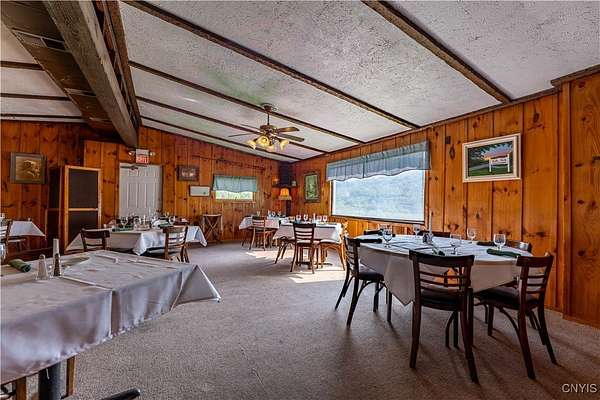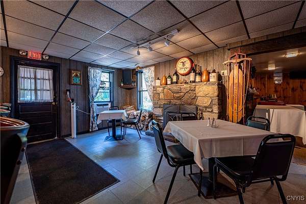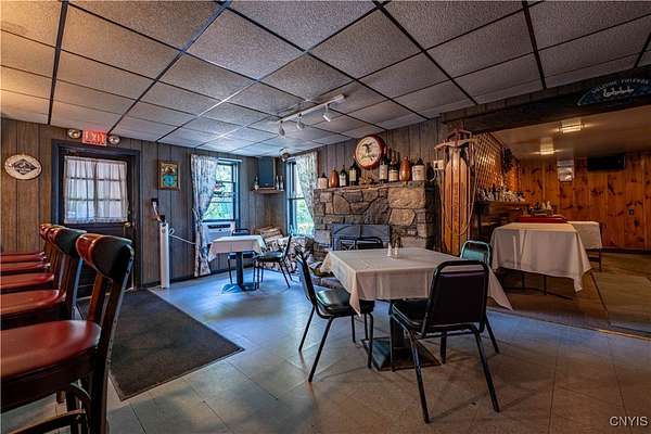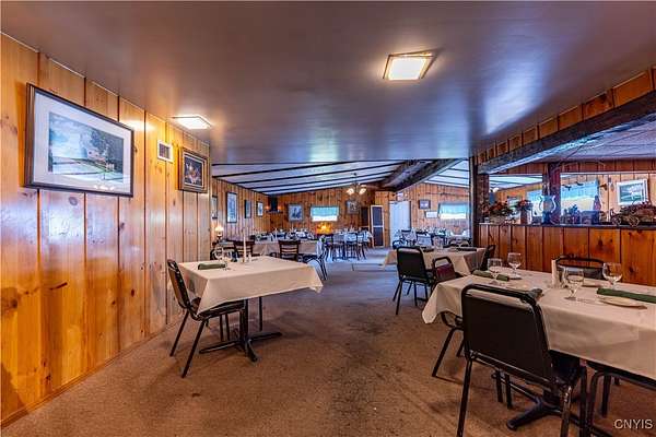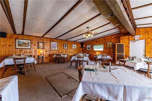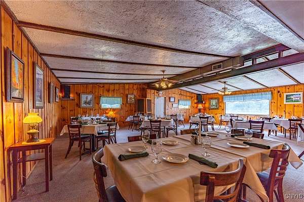 Welcome to the Bella Vista Restaurant, a long-standing staple in the Mohawk Valley, ideally situated just outside the charming City of Little Falls and minutes from two convenient exits on the NYS Thruway. Owned and operated by the same dedicated proprietor for over 30 years, this well-established and successful business is now ready for its next chapter. Perched on four scenic acres, Bella Vista offers incredible flexibility for investors, entrepreneurs, or dreamers looking to own a destination property. The restaurant seats over 80 guests, with a layout that caters to everything from intimate private dinners to large group gatherings and live entertainment. Guests can dine beside one of two cozy wood-burning fireplaces or take in breathtaking views from the expansive outdoor deck. The bar area includes ample seating, a well-appointed service station, and a fully equipped commercial kitchen-everything you need to continue operating seamlessly from day one. The second floor features living quarters ideal for an owner-occupant, staff housing, or conversion to guest accommodations. Not looking to run a restaurant? This unique property is brimming with alternate possibilities. With some renovation, it could become a private residence, an Airbnb, or a charming bed & breakfast, all with year-round panoramic views and proximity to the historic Erie Canal and local attractions. Recent upgrades completed in July 2024 include a major roof replacement, a restructured main entrance, and updates to the plumbing system-bringing added value and peace of mind to future owners. To top it off, the property also includes a barn/garage for storage or future expansion. Whether you're continuing a restaurant legacy or reimagining the space entirely, Bella Vista is a rare opportunity you won't want to miss.