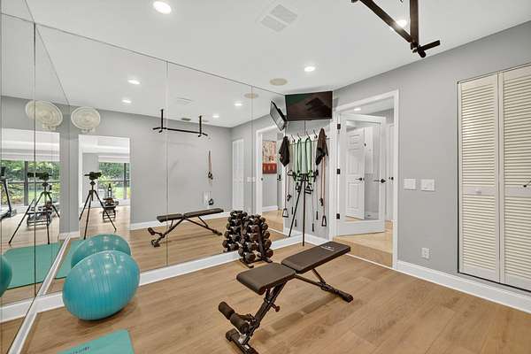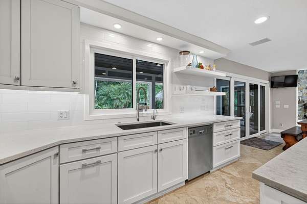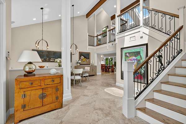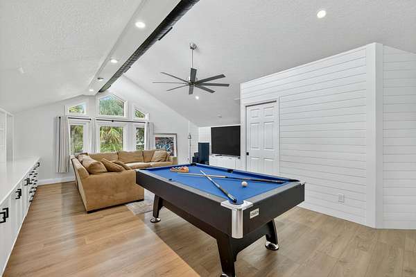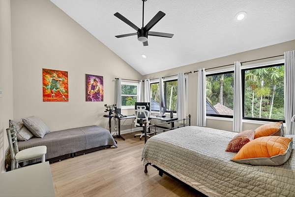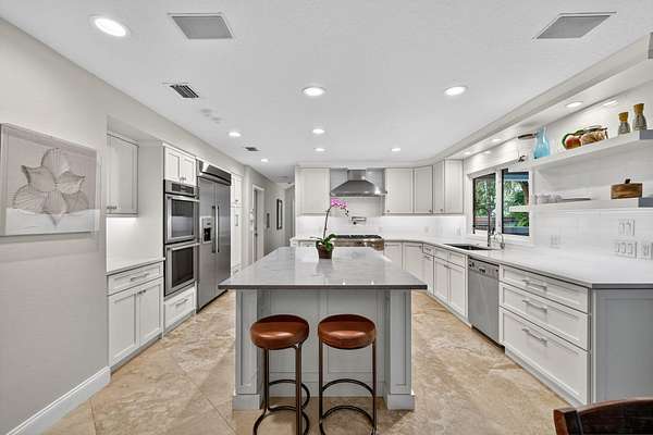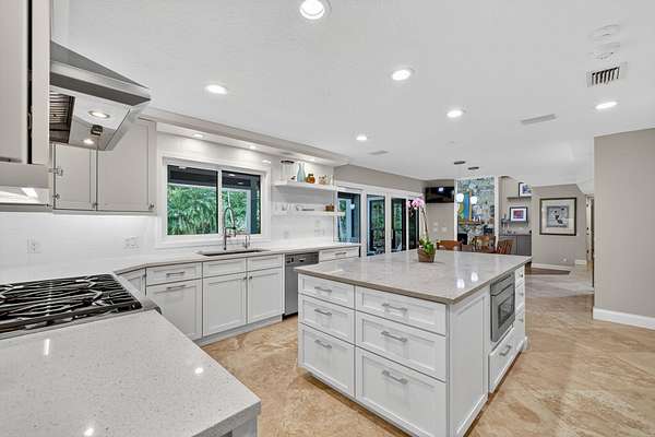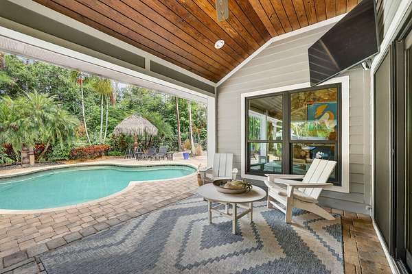 Live, work & play in your own tropical oasis! Nestled on over 1.5 lush acres in the heart of Palm City, this beautifully updated home features 5bed/3.5bath/3car, den & office spacious media room with closet and 2 gym studios. Enjoy over 5400+ sq ft of living space with room for everybody! Upgrades include impact windows and doors throughout, updated open kitchen with large island, quartz countertops and high-end appliances with master suite on main level with own sitting area. Step outside to your private paradise complete with tiki bar, grill & TV, cabana bath & saltwater pool with fire pit, perfect for year-round entertaining and relaxing in the Florida sunshine. Great location close to A-Rated schools, golf, tennis, I-95, Turnpike, fine and casual dining, beaches and PBI Airport.