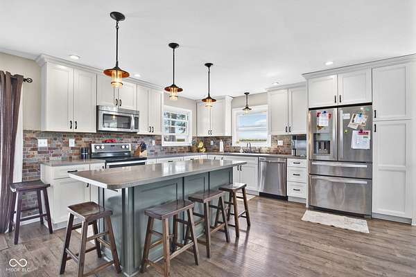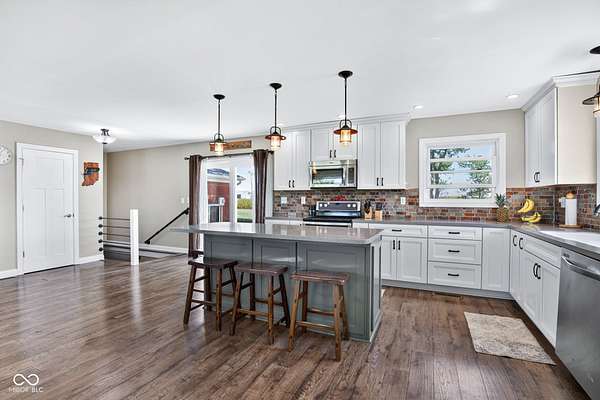 Need space inside and out? This is it!!!!...Home is 3350' of living space, at only $215 a sq', 2 pole barns and 4.05 acres!...This is a unique opportunity, for single family or your multi-Generational residence, as there are 2 beds and 2 full baths on the main floor and 2 beds and 1 large full bath on the lower level. This property presents a canvas for inspired living, ready to be shaped into your ideal home. Imagine awakening each morning in one of the four bedrooms, each a personal haven for rest and rejuvenation. Three full bathrooms provide convenience and comfort, accommodating the rhythms of daily life with ease. With 1728 square feet of living area on the main floor and 1568' ft on the lower level, the layout offers a comfortable arrangement of space both on the main floor as well as the lower level, allowing for both shared moments and private retreats. The expansive 4.05 Acre lot with 2 Large pole barns (approx. 40x80 & 40x48) presents a world of possibilities for outdoor enjoyment, workshops, hobby's, animals, or your new home office, inviting you to cultivate your own private sanctuary. Another great space is on this 36' x 24' Deck right off the kitchen for some amazing BBQ's and entertaining or just hanging out. This 1965-built Brick home awaits its next chapter, brimming with potential and promise. just Minutes from town but in the country, you get the best of both worlds.