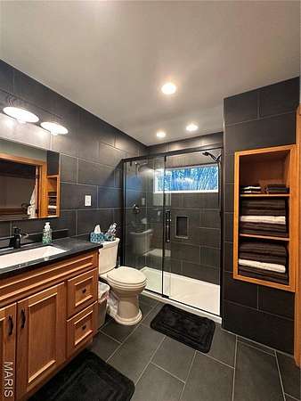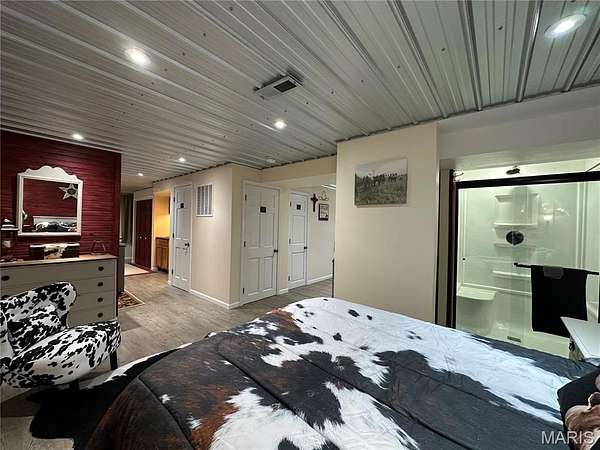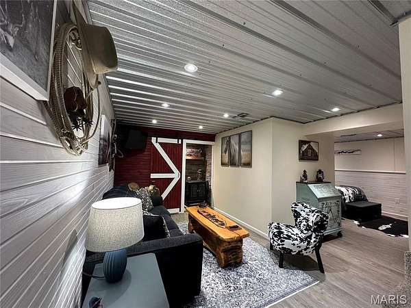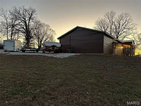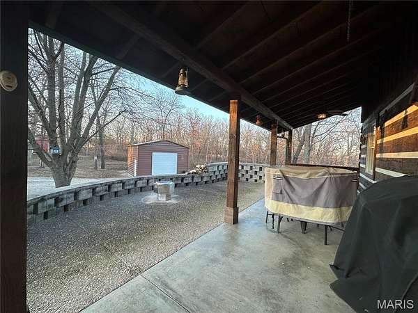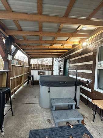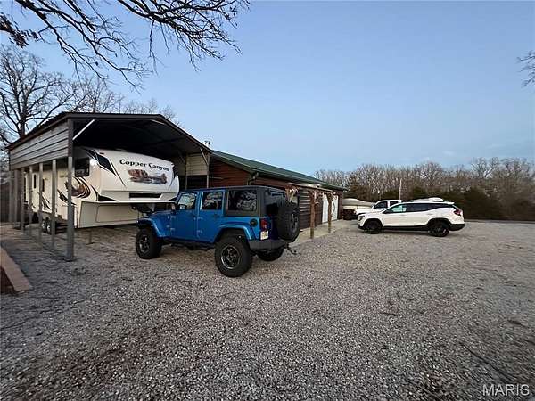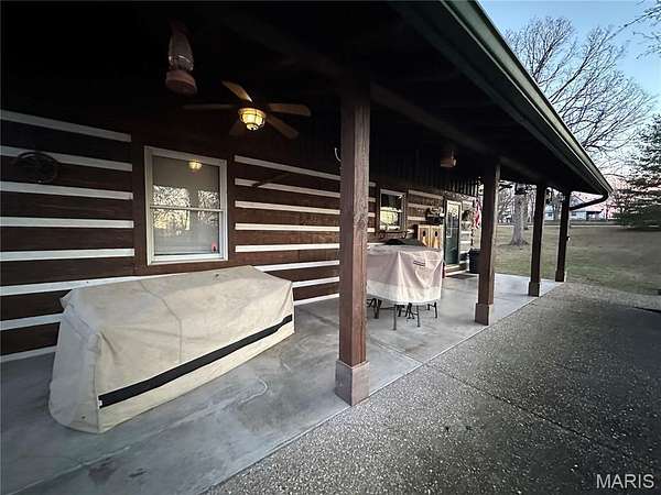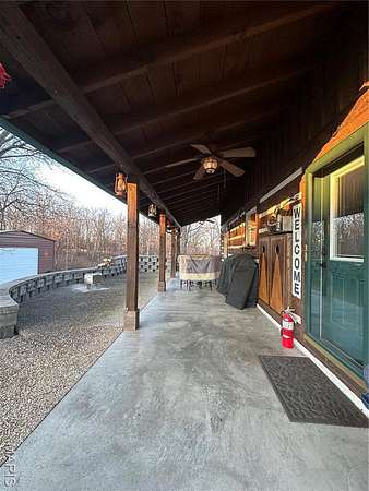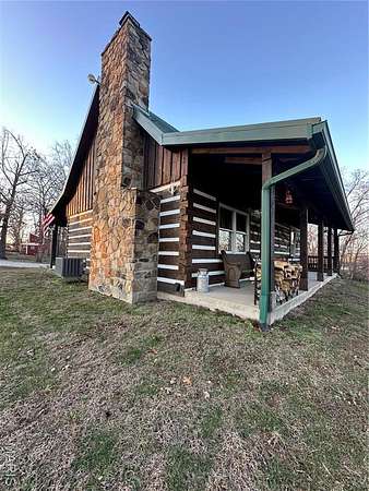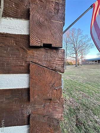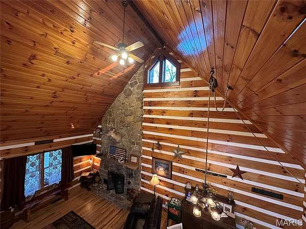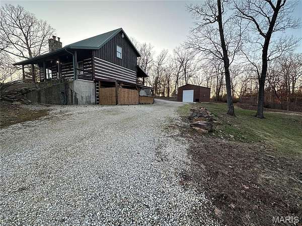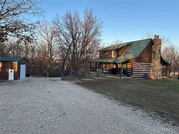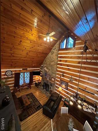 This stunning cabin features 12" x 9" exterior hand-hewn tongue-and-groove logs with framed interior walls. The Great Room showcases an amazing two-story stone wood burning fireplace, soaring vaulted ceilings lined with beautiful 6" tongue-and-groove wood planks, and gorgeous wood flooring throughout. The primary suite offers a spacious bath with heated tile floors and a walk-in closet. The kitchen features newer appliances and flows seamlessly into the living space--perfect for entertaining. Additional highlights include custom baths, a high-efficiency heat pump, solid pine 6-panel doors, and exceptional craftsmanship throughout. The finished lower level includes a second kitchen, family room, recreation area, half bath, and a den/office space, offering flexible living or guest accommodations and walks out to a covered patio w/hot tub and counter bar, great for entertaining. Enjoy the outdoors from the covered front and back porches, surrounded by gorgeous landscaping. The property also features an aggregate patio and walkway--ideal for relaxing or hosting guests. Outbuildings abound, including a 50' x 30' shop with living quarters, a barn with hay loft, chicken coop, metal storage building with concrete floor, carport with RV hook-up, and a stocked pond. Horse lovers and animal enthusiasts will appreciate the space and versatility this property provides. Whether you're looking for a private retreat, hobby farm, or an income-producing short-term rental, this exceptional property offers it all--just minutes from town conveniences.