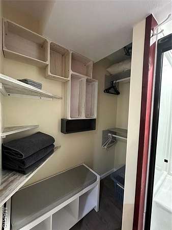 - Ceiling Fan(s), Custom Cabinetry, Dining/Living Room Combo, High Ceilings, High Speed Internet, Open Floorplan, Separate Shower, Special Millwork, Storage, Tub, Walk-In Closet(s), Workshop/Hobby Area