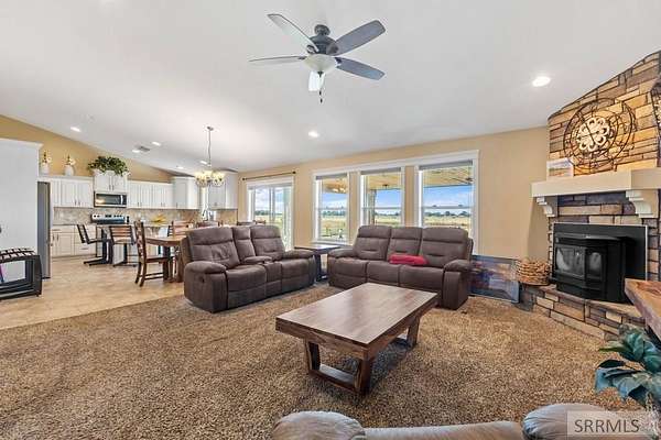 BEAUTIFUL HOME ON ACREAGE WITH TETON VIEWS! Dreaming of wide-open spaces and a home in the country with no covenants or HOA? This property is the perfect fit! Situated on nearly 19 acres with full water rights, you'll find six acres of established hay, an outdoor arena, and plenty of room for livestock, horses, and the perfect spot to build a shop or barn. The home offers approximately 3,300 sq. ft. of living space with a finished basement, featuring 6 bedrooms and 3 bathrooms, a large family room with a cozy fireplace, and a convenient mudroom and laundry just off the garage. The kitchen is a showstopper with granite countertops throughout and a huge hidden pantry that provides incredible storage. Enjoy peaceful country living while taking in breathtaking views of the Teton Mountains-all while being just a short drive from town. Call today to schedule your private showing and experience all the possibilities this property has to offer!