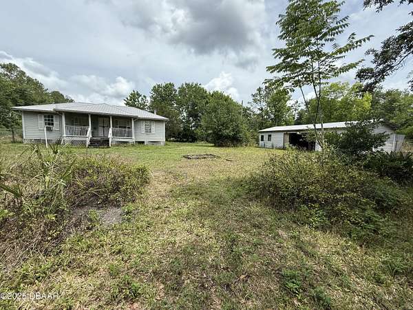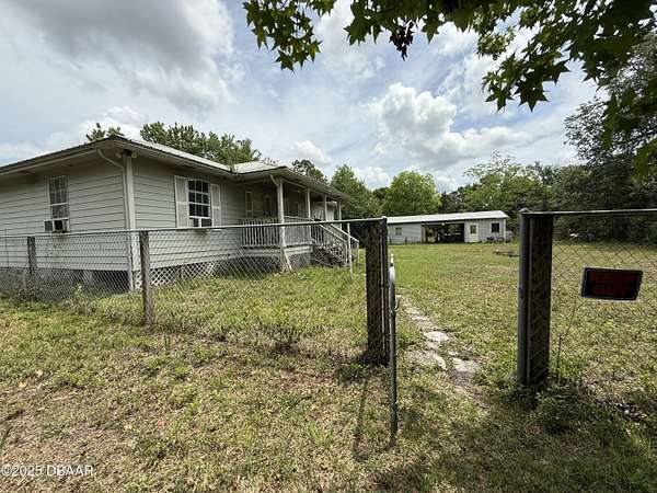 5 Acre gated & fenced property minutes to New Smyrna Beach and Port Orange. 3 bed, 2 bath farmhouse type home would be easy to remodel to today's standards. Large outbuilding and 1-space carport. Additionally, there are two separate enclosed shop spaces for farm equipment, tools or vehicles. Plenty of parking space. Mature trees and landscaping. This property has unparalleled potential where the country air is breezy and the quiet life is good!