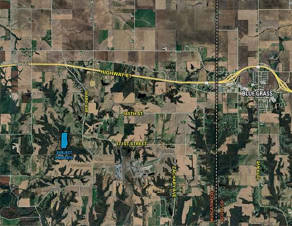Nestled in the rolling hills above the Mississippi River corridor, this land provides expansive views, peaceful surroundings, and excellent access, just minutes from Highway 61 and a short drive to Muscatine, Blue Grass, and the Quad Cities. The property sits along a quiet dead-end road, ensuring privacy and tranquility rarely found this close to town.