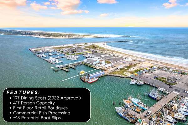 Unmatched Ocean & Bay Views with Expansive Wrap Around Deck. The Most Extensive Restaurant and Bar Available on the East End - Welcome to 363 Beach Road,offering an unmatched combination of stunning ocean / bay views, a renovated layout, & a prime location in the heart of the new "Hampton Bays". This venue is poised to be a focal point for both daytime & nighttime activities, drawing a vibrant crowd that is transforming the Hamptons scene. With 8,160sf of space, including 3,391sf of indoor dining and 4,769sf of wraparound outdoor decking, the property offers an impressive 417-person capacity (137 indoors & 280 outdoors). The 197-dining seats can be strategically positioned indoors & outdoors with breathtaking views of Shinnecock Bay, Shinnecock Canal, Atlantic Ocean, and Ponquogue Bridge. The venue's unparalleled sunset views create the perfect backdrop for an unforgettable experience. Situated directly across from the beach, this location provides a built-in clientele of beachgoers & tourists throughout the day, which seamlessly transitions into a vibrant nighttime scene. This incredible accessibility ensures a steady flow of patrons seeking both dining and leisure. The occupant can also lease the retail storefronts on the first floor; complementing the restaurant offerings creating additional business potential. Whether it's a private celebration, a corporate event, or a wedding, the venue offers versatile event spaces designed to accommodate a variety of occasions. Its spacious wraparound deck, multiple bars, and open dining areas are perfect for hosting spectacular private and public events. Potential exists to retrofit the commercial fish processing & approximately 18 boat slips in the marina pending Town & DEC approvals. Join the evolving Hampton Bays scene and make your mark with an iconic property designed for both luxury and high-capacity dining. This is truly a premier destination for those looking to create a one-of-a-kind culinary and entertainment experience. Asking Price: $6,495,000. Please inquire with the Hamptons Commercial RE Team for additional information.