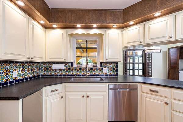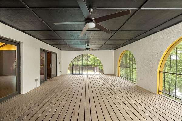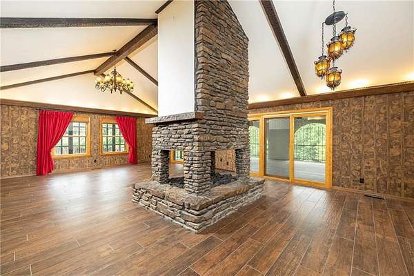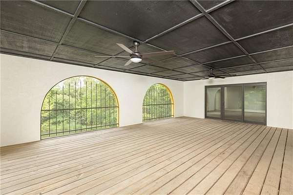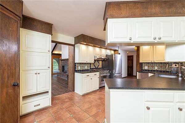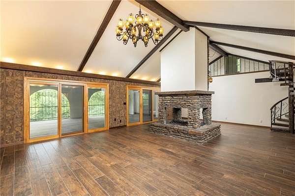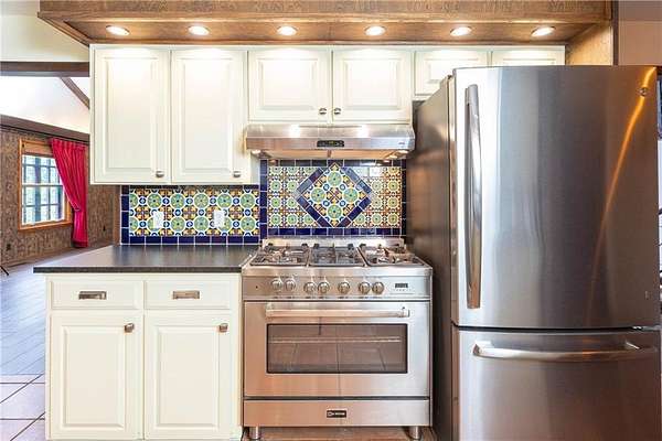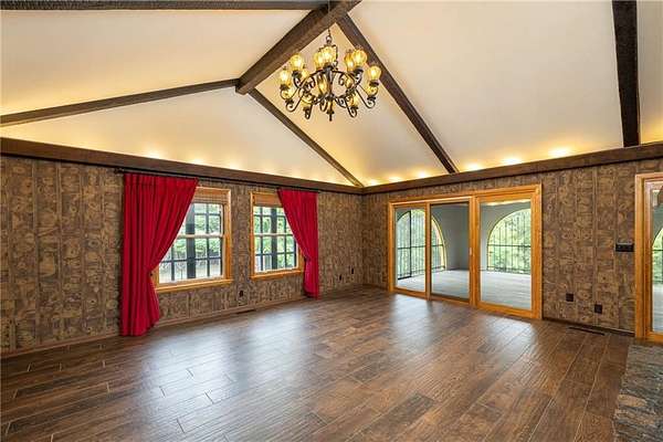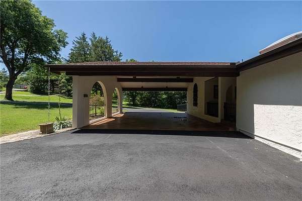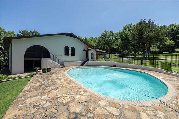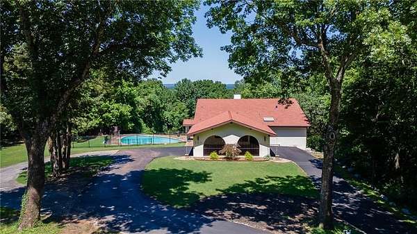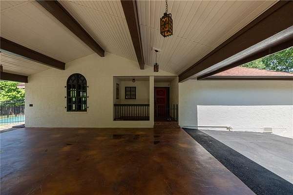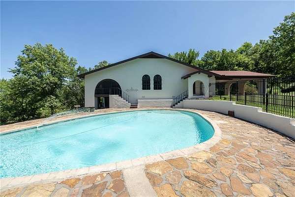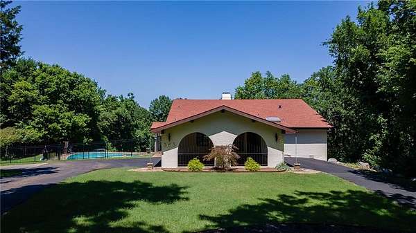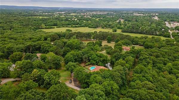 This Mediterranean, Mid-Century Modern home is amazing. Located on 1.45 secluded acres at the base of Kessler Mountain. Inside, you'll find a remodeled kitchen with Cotto tiled floor, leathered granite, Talavera tile backsplash, Chef's grade Verona gas range and eating area.The living room boasts a vaulted ceiling with porcelain tile wood floor, ornate wooden beams & built-ins. 4-sided native stone fireplace & unique custom wood Masonite wall paneling in huge living room. Enjoy the 500 sqft screened-in terrace w/ arches as a prime entertainment space. BRAND NEW CARPET in bedrooms. The exterior, with BRAND NEW PAINT, is authentic stucco with portico, arched Pella glass doors & windows w/ custom wood shutters. A stone decked saltwater pool overlooks the mature trees and large Artesian well fed pond. Spanish iron hand blown amber glass light fixtures.Basement workshop. New asphalt drive.Minutes to I49 & UofA. Fayetteville Schools. Additional adjoining 3.22 acres listed as MLS #1318358.