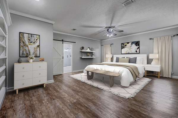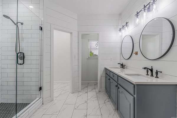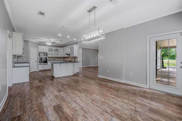 Welcome to this truly exceptional and rare property located in Greenbrier School District. Set on 4.58 acres behind a hard-wired gated entrance, this home offers the highest standard in privacy, function, and style--with 4 bedrooms, 2.5 bathrooms, an office, underground safe room, and two large shop buildings. Inside, the fully remodeled home features expanded dining area, granite countertops, custom cabinetry, real brick backsplash and new appliances, spacious master suite with a massive walk-in closet and underground heated/cooled safe room with electrical and storage. New flooring throughout, insulated windows and garage, and walk-up attic access with decking and fire alarm system as well as a hard-wired security system. The outdoor amenities are just as impressive with a 50x100 metal building with full bath, office w/ window unit, propane heater, floor drains, ceiling vents & fans, 50- & 30-amp service and generator hookup. 320-amp electrical service for property and whole-home generator. Additionally, a 40x 66' shop with RV parking space and lean-to for added storage, pipe fencing, chicken coop and raised garden beds. See agent remarks.