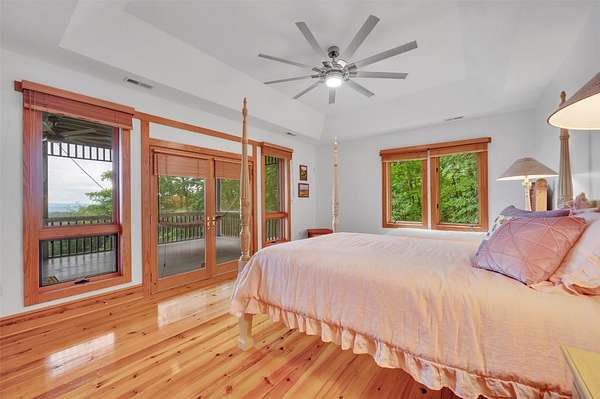 Est $9,766/moSpacious 4 BR, 4.5 BA custom home with panoramic views of Lake Toxaway, the Blue Ridge Parkway, and surrounding mountains. Conveniently located on Lakeside Mountain, this stunning home features a new roof, extensive wood paneling, heart pine floors, two massive stone fireplaces, an open floor plan with vaulted ceilings, two large covered, screened porches, covered parking, and an expansive circular drive. This is the perfect full-time home or vacation getaway in beautiful Lake Toxaway.