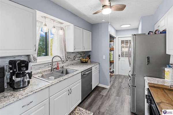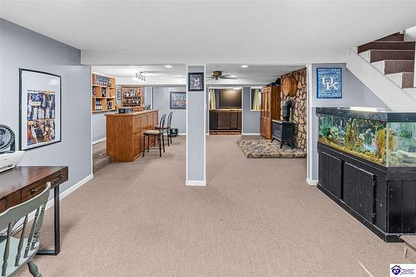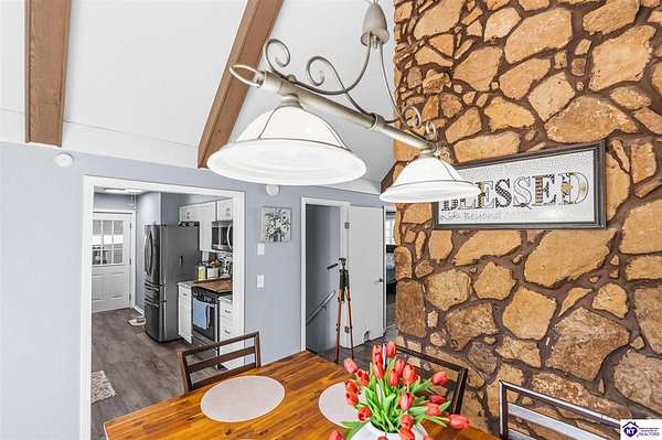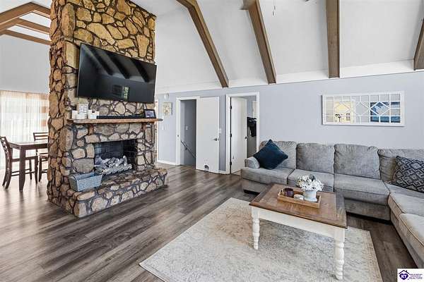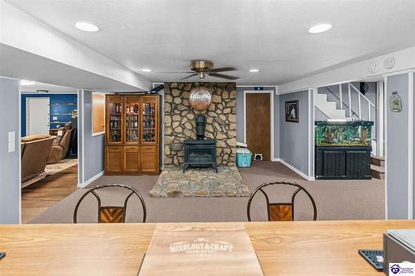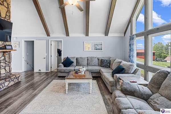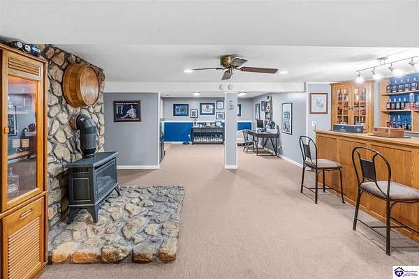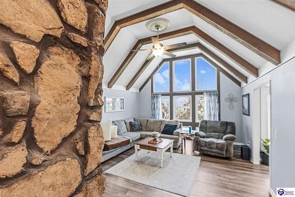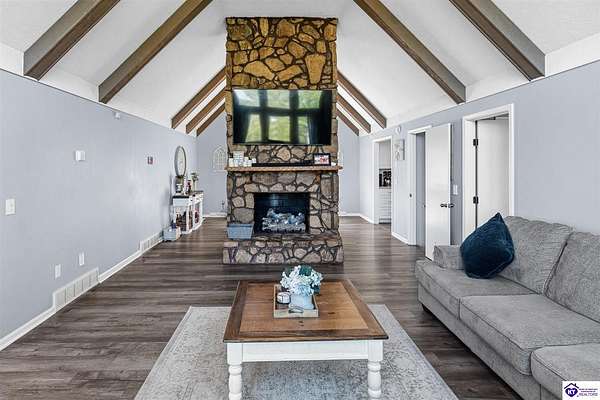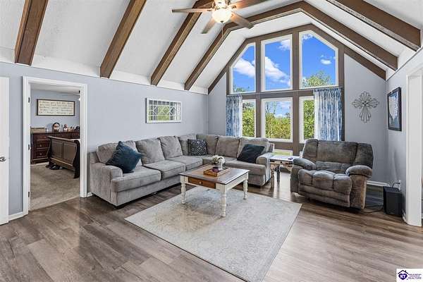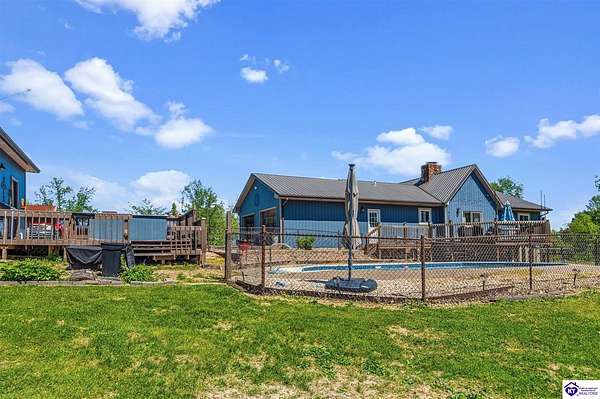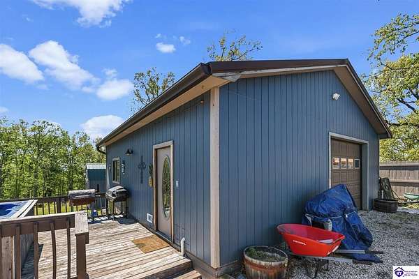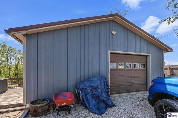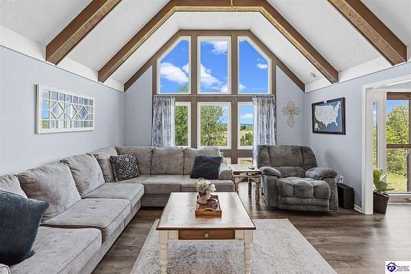 Perched atop nearly 5 scenic acres, this one-of-a-kind property offers breathtaking views and the perfect blend of comfort and country charm. This spacious 4-bedroom, 3-bath home features approximately 2,990 sq ft of living space and a distinctive A-frame front with expansive windows designed to capture the stunning surroundings. The main level boasts a welcoming living room with a cozy gas fireplace, while the walk-out basement provides additional living space complete with its own built-in bar, second living area, and a gas log “wood stove”—ideal for entertaining or relaxing. Step outside and enjoy your own private retreat, featuring an 8-ft in-ground pool, hot tub, and a back deck perfect for soaking in the peaceful setting. The property includes both an attached 2-car garage and a detached 2-car garage with electricity, offering ample storage and workspace. Recent upgrades include new Primax windows with a lifetime warranty, a no-clog gutter system on both the home and detached garage, and a Rinnai tankless water heater for added efficiency. With a mix of open land and some wooded acreage, this nearly 5-acre property offers privacy, space, and incredible views—making it the perfect full-time residence or personal stay-cation retreat in a quiet country setting.