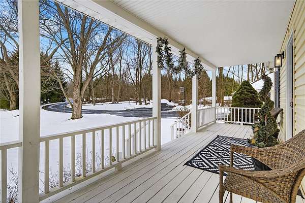 If you've been dreaming of your own private country oasis, this nearly 5-acre property delivers. A paved driveway with a graceful looping turnaround welcomes you home and sets the tone for everything this property offers. Meandering outdoor trails invite walking or four-wheeling adventures, while the expansive, level yard is perfect for games, gatherings, and outdoor fun. Privacy here is truly exceptional. Enjoy a sun-drenched, south-facing deck overlooking the pool-an ideal space for relaxing or entertaining. An attached oversized two-car garage connects through a convenient breezeway. Inside, the modern layout features an open floor plan with vaulted ceilings, four bedrooms plus a dedicated office, including a main-floor bedroom for added flexibility. The spacious, partially finished lower level offers a home gym and abundant storage. This home strikes the perfect balance of open, airy living and warm, cozy comfort.