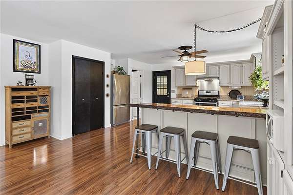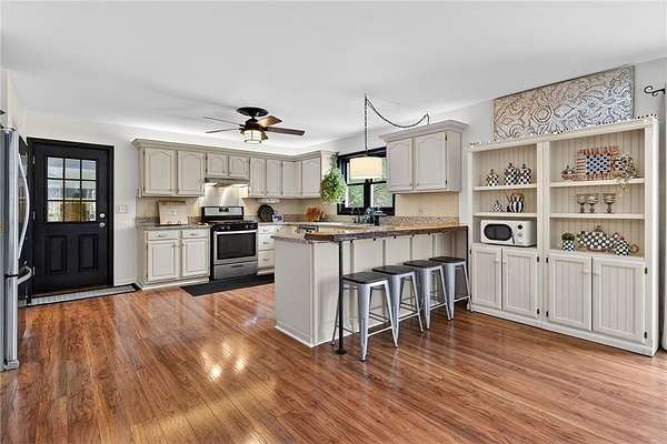 - Breakfast Bar, Cathedral Ceilings, Ceiling Fans, Home Office, Kitchen Family Room Combo, Natural Woodwork, Pantry, Programmable Thermostat, Skylights, Window Treatments