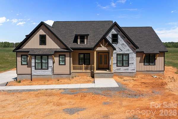 Luxury Custom Farmhouse Spec in Woodstone Communities newest subdivision, Woodstone Acres, with no HOA set to be completed 5/29/2026. This beautiful new construction is set on a huge 1.53-acre lot. The Cottonwood model is a sprawling 1-Story ranch offering approximately 2,980 sq ft with 4 bedrooms, office/study, all designed with upscale finishes and a thoughtful layout including 11' ceilings in the main living areas. This model also includes a 16-speaker stereo system. The open chef's kitchen features custom cabinetry, upgraded quartz countertops throughout, gourmet Forno gas range and appliances. This all opens to your living room area that features a gas fireplace and a 12' sliding patio door leading to your huge covered porch with Trex decking allowing for indoor/outdoor entertainment. The primary suite offers a huge bedroom, spacious walk-in closet with custom built-ins and dresser drawers, and a spa-inspired bath with soaking tub and custom tile work. Additional highlights include beautiful engineered hardwood, tile and carpet flooring, custom wood shelving throughout, abundant storage, and unfinished upstairs bonus room with rough-in electrical, plumbing and HVAC ready for future addition. Exterior features Hardie siding with beautiful M-Rock stone and brick accents for lasting curb appeal and a sealed crawlspace foundation equipped with a dehumidifier. This is a great opportunity to get in early at the beautiful Woodstone Acres.