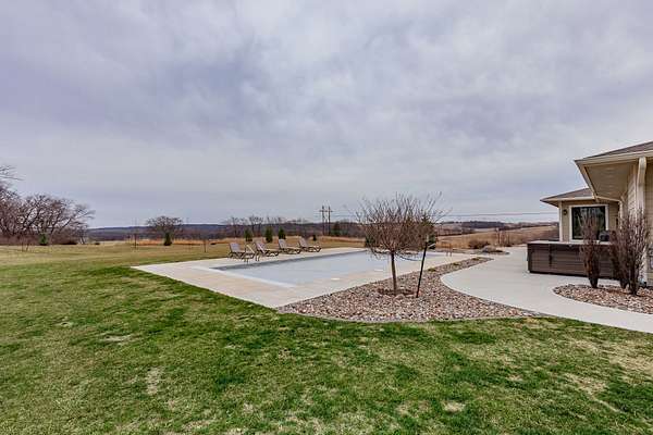 Located on 4.24 acres within the much desired Van Meter school district and Hickory Lodge neighborhood. This ranch home provides the space of small town living while being only minutes from the city. The home greets you with an open floor plan, large kitchen with center island, butlers pantry, double fridge, cooktop, double oven and large family room with fireplace. In addition you will find four season room that overlooks the backyard, in ground swimming pool and has views for miles just perfect for your own peaceful hideaway. The master suite offers a private bath, walk in tile shower and walk in closet. Rounding out the main level is two additional bdrms with jack and jill bath. The walkout LL has an additional family room, wet bar, safe room, storage room, flex room, and two more bdrms with additional Jack and jill bath. The 4+ acres offers a firepit and the perfect mix of mature trees and open space for your family and friends to enjoy.