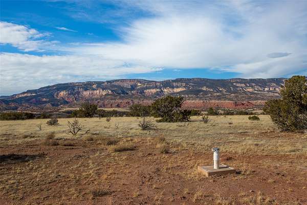 Tucked away in the tranquil landscape of Abiquiu, New Mexico, this extraordinary 67-acre property offers a harmonious blend of natural beauty and modern possibilities. From the moment you pass through the gated entrance, a sense of calm and seclusion surrounds you-welcome to your own private sanctuary. The land unfolds in all directions, showcasing stunning 360-degree vistas that stretch as far as the eye can see. A newly drilled well provides a dependable water source, while the land itself is framed by awe-inspiring landmarks. The Jemez Mountains rise dramatically to the west, their rugged peaks glowing in shades of gold, amber, and crimson under the setting sun. To the east, the iconic silhouette of Pedernal Mountain commands the skyline. Nature lovers and outdoor enthusiasts will find endless adventure just minutes away. Abiquiu Lake offers boating, fishing, and water sports, while the nearby Ghost Ranch invites exploration among its storied red rock canyons and cultural landmarks. Scenic hiking trails thread through the surrounding wilderness, offering quiet solitude and inspiring vistas. This remarkable property also includes a full set of architectural plans by the renowned Craig Hoopes, offering a vision for your ideal home or retreat. Whether your dream is a sleek modern dwelling or a cozy, rustic hideaway, the level mesa provides multiple building sites, each with its own breathtaking view. Though the property feels like a world away, it is part of a well-maintained community, protected by HOA guidelines and covenants that preserve its untouched beauty. Here, the land doesn't just offer space-it offers inspiration. A rare opportunity to shape your future in one of New Mexico's most enchanting settings, this is more than land, it's a canvas upon which to paint the life you've always imagined.