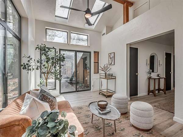 Welcome home to your fully remodeled, luxury cabin-style retreat nestled among the trees in Northeast Norman. This one-of-a-kind property perfectly blends charm, comfort, and modern updates--all within the highly sought-after Robin Hill School District.