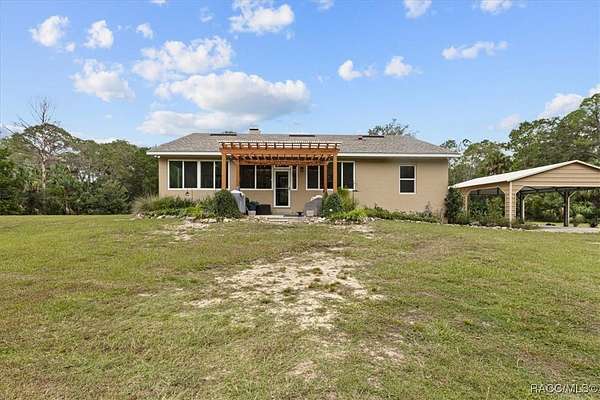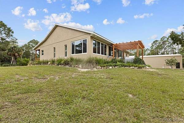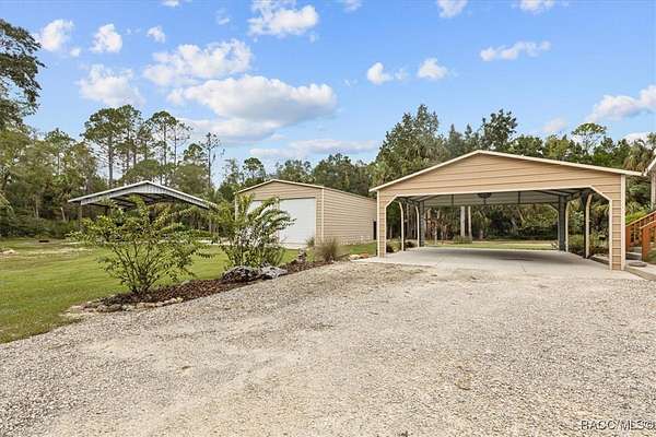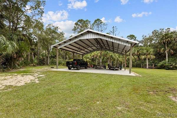Don't miss out on this never flooded Custom Built, 2017 L. Norman Adams concrete block home on 5.26 acres with 3 bedrooms, 2 baths, and 2,640 sq. ft., backing up to Gulf Hammock Wildlife Management Area and overlooking a beautiful pond.... Features include elevated ceilings, split floor plan, insulated tinted windows, wood cabinets, granite countertops, security system, wood burning fireplace, bamboo & tile floors, micro-jet irrigation, and a new water treatment system... The property includes a 40x30 enclosed garage with two 12 ft. roll-up doors, 25x24 carport, 40x40 pole barn with water/electric, detached game cleaning station, and 50-amp RV hookup.