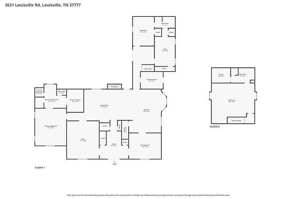 Rare opportunity to own two homes on 35.22 acres in sought-after Louisville, TN. The main residence at 3631 Louisville Rd is a custom-built home set at the end of a private drive, featuring hardwood floors, soaring ceilings, a fireplace in the living room, sauna, water softener system, security system, quality well water, and wood milled directly from the property. A detached shed adds additional storage. The second home at 3635 Louisville Rd offers 1 bedroom, approximately 960 square feet, and added flexibility for guests, multi-generational living, rental income, or a private retreat. With a blend of open and wooded acreage, this property offers privacy, function, and convenience just outside Knoxville. Parcels are also available individually under MLS #243581 and MLS #243582.