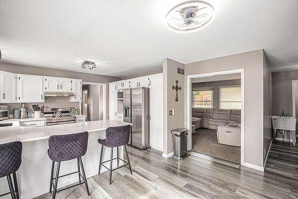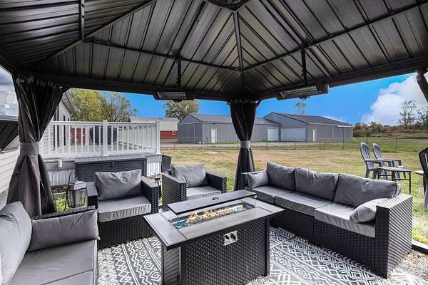 A beautifully updated country retreat with every modern upgrade and space for both living and leisure. Welcome to this meticulously maintained home where style meets function at every turn. Inside, enjoy a bright, open layout featuring new flooring (2022) and a chef's kitchen complete with quartz countertops (2022) and new stainless-steel appliancesincluding the stove, microwave, dishwasher, and refrigerator (2022). The entire interior and exterior were freshly painted in 2023, giving the home a crisp and modern feel. The attic was re-insulated in 2021 for improved energy efficiency, ensure total peace of mind with a new roof (2024), basement waterproofing drain system (2025), and new block basement windows (2024). The finished basement was transformed in 2023 into a complete entertainment zone with a custom movie theater and bar area, perfect for relaxing or hosting guests. Outside, you'll find a true backyard retreat featuring a new gazebo and fire-pit area (2024)ideal for summer nights under the stars. The garage was painted and finished with epoxy flooring in 2024, adding polish and practicality. Sitting on a spacious lot with beautiful natural surroundings, the property also features a small detention pond and two impressive pole barns with concrete floors, measuring approximately 52'*48' and 48'*30'providing exceptional space for storage, workshops, or hobby use. Every major improvement has already been completedsimply move in and enjoy the perfect blend of modern upgrades and serene country living.