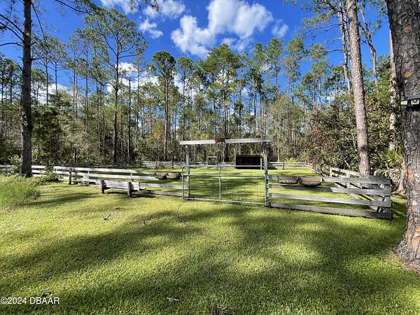 Country living close to town! This 4 bedroom/ 2 bath home sits on 2.83 acres, beautifully cleared and landscaped with 2 fenced gardens. Huge detached garage 4+ car garage with 200 amp service. Horse corral at rear of property. This home has a great open floor plan with vaulted ceilings in the living room. The kitchen is a cook's dream with stainless steel appliances, custom wood cabinets and granite counters. Spacious dining room with trey ceiling. Ceramic tile and laminate flooring throughout this lovely home. Split bedroom plan with a very spacious master suite, wonderful closet space. Custom master bath offers walk in shower with seating. Screened swimming pool with covered entertainment area. This property has a completely private gated entrance and the house cannot be seen from the street. House is also pesticide and chemical free. Non toxic cleaners only. House has double roof trusses. Two Attics, Block built, updated doors with sliding screens, Stainless appliances, Giant kitchen island with numerous outlets, trey ceiling in dining room, Amazing views from large windows,Giant Master suite, Beautiful master bath with easy access tile shower, dual sink vanity,Two sets of French Doors with incredible views, Natural pond with a fountain and New lights, Huge fire pit, 10,000 plus gallon Pool, screened with a large covered area for entertainment and viewing storms, newly painted pool deck and front driveway, beautifully landscaped 2.83 acres with a horse corral. Solar lights everywhere for security, Two gardens, one large fenced raised bed garden and Never a chemical added. Smaller garden screened in next to the pool area for herbs and salads close to the house. There is a salt water system for the house and numerous water outlets throughout the property. The house is wired for a whole house generator. There is a small carport beside the house. The Red Steel outbuilding is a double front rolling door and a single roll up door on the rear of the building. Lots of storage on the side with 50 amp and 200 amp electrical RV hook up and water. Massive Millings driveway for all of the Toys! There's a small Quonset hut for extra storage behind the giant out building. The property extends behind the gated horse corral and leads to a beautiful wooden area and running stream. This is perfect for berry picking in the springtime. There are numerous varieties of trees and plant. Bottlebrush are such a beautiful variety and there are weeping bottlebrush near the water shed. Roof 2012, NEW A/C Nov. 2024, guest bath needs remodel & Water Heater 1998. Secluded location, yet only 15 miles to shopping and beaches. All information recorded in the MLS intended to be accurate but cannot be guaranteed.