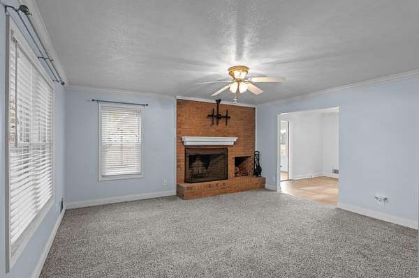 Special Financing Incentives available on this property from SIRVA Mortgage. Welcome to your private country retreat! This charming 3-bedroom, 2-bath all-brick home sits on five beautiful acres of planted pines, offering peace, privacy, and room to breathe. A covered front porch and classic white fencing set the tone as you arrive, creating instant curb appeal in a serene rural setting. Inside, the home features a spacious great room highlighted by a raised brick fireplace with a convenient wood storage box, allowing you to load firewood from the sunroom-no carrying through the house. Just beyond, a bright sunroom provides the perfect spot to relax and enjoy views of the surrounding landscape. The home offers nicely sized bedrooms, two full baths, tile flooring throughout, and carpet in the great room for added comfort. Outside, enjoy the best of outdoor living with a rear deck, double carport, and two storage buildings, including a large one ideal for equipment, hobbies, or extra storage. The land is truly special-wider than it is deep, with a walking trail winding through the pines, perfect for peaceful evening strolls. Enjoy a picnic in your own private park-like setting, complete with a bench tucked among the trees-an ideal spot to unwind and reconnect with nature. If you're seeking quiet country living, privacy, and a home that blends comfort with natural beauty, this one is a must-see!