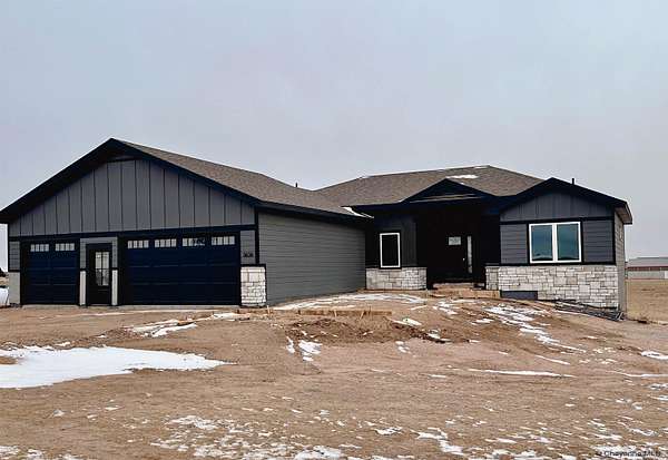 The builder is offering $10,000 in buyer concessions that can be used for interest rate buy-down or closing cost assistance! Welcome to one of Cheyenne's newest subdivisions with paved access to the home - Meadowlark Airpark! to be completed by mid November** Milliron TJ Construction presents this fantastic floor plan on 6.30 acres. The 'Meadow' has a split bedroom design. Amenities include a spacious kitchen w/quartz surfaces, walk-in pantry, LVP flooring, 5 piece master bathroom, massive walk-in closet, main floor laundry, vaulted ceilings, unfinished walkout basement with a full bath rough-in, 95%+ furnace, central AC, 3 car oversized garage with 8' doors and class 4 impact roof. Enjoy the covered porch and patio! Horses, 4H projects and outbuildings allowed. Enjoy incredible sunrises and sunsets in Meadowlark! Easy directions to the home: Hwy 30 east, turn N/E on Railroad Rd. for 5.7 miles. Turn north on Earhart Dr. into Meadowlark Airpark subdivision. Photos are of an existing build and finishes may vary.