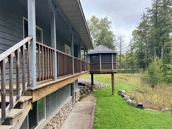 Located on a quiet no-through road, this 3BD/2BA cedar sided raised ranch sits on a 2.5 AC lot with 150' frontage on fully recreational MUSKESIN LAKE. The setting offers an expansive yard from the home to the lakeside & a screened gazabo to enjoy those views when the weather is to inclement to be on the spacious attached sun deck. Inside the home highlights include an open concept with plenty of natural sunlight, cathedral ceilings, field stone FP for chilly nights, and a finished walk out lower level built with in-floor hydraulic heat. The floorplan allows for privacy & space to unwind. The detached heated garage is perfect storage for vehicles, tools & recreational gear-ATV/Snowmobile trails are all nearby & there is plenty of National/State land for exploring. Whether you're enjoying quiet mornings in the gazebo or spending the day boating or fishing, this is a truly special setting less than a half an hour from downtown Minocqua to make for a year round or secondary residence.