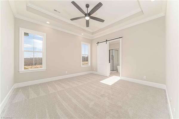 Discover this stunning, one-of-a-kind modern farmhouse offering true one-level living on 45 private acres in Sandy Ridge. This brand-new 4-bedroom, 2 full bath home includes oversized 2-car attached garage and a drive though 58x29 detached garage with loft and half bath. Enjoy relaxing evenings on the covered front or back porches overlooking beautifully wooded land. The secluded primary suite features double tray ceilings and a spa-like bath with a free-standing tub and separate shower. At the heart of the home, the open-concept kitchen, dining, and living areas provide an inviting layout, complete with a large island, walk-in pantry, and a detailed shiplap fireplace with a cedar mantle. Three additional bedrooms sit on the opposite side of the home and a full bath, ideal for guests. Come explore this exceptional property and fall in love with its peaceful setting and thoughtful design.