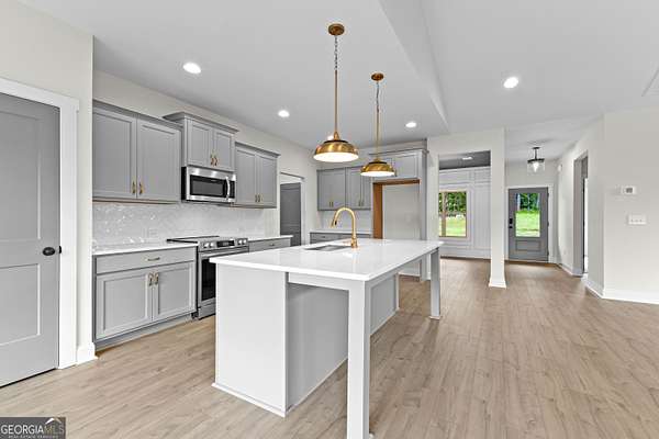 2 +/- ACRES IN SOUGHT AFTER HILLCREST SCHOOL ZONE AND TWO BEDROOMS ON THE MAIN! The Smithfield Plan features foyer opening to Dining Room The Dining Room features trim work accent for added detail. The Family Room offers Vaulted Ceiling and wood burning Fireplace with Brick or Stone Hearth. This plan offers an open flow from Family Room/Kitchen/Breakfast Area. The Kitchen boasts shaker style cabinets, quartz or granite counters, tile backsplash, stainless appliances, and pantry. The island is a great place for serving or entertaining! On the main level, you'll find a nicely sized Owner's Suite with vaulted ceiling and can lighting. The Owner's Bathroom features tiled shower, garden tub with tile surround, double vanity, and a walk-in closet. Additionally, on the main level you'll find a guest bedroom and bathroom. On the second level you'll find a lflex room ideal for playroom, media space, or office. Two guest bedrooms share a hallway bathroom featuring tiled flooring and quartz or granite counters. Each guest room is pre-wired and braced for a ceiling fan. This beautiful home features a FOAM INSULATED ATTIC, total electric construction, and architectural shingled roof. SMART HOME TECHNOLOGY PACKAGE included for convenience The Dairy is minutes from downtown LaGrange, West Point Lake, and I-85 for commuters, yet out in a peaceful country setting! Up to $6,000 toward closing costs assistance available when using builder's preferred lender!
