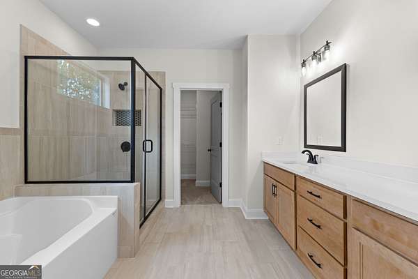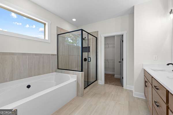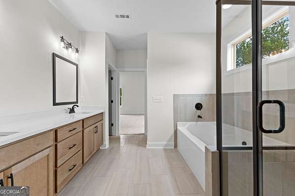 - Double Vanity, Entrance Foyer, High Ceilings, Master On Main Level, Separate Shower, Split Bedroom Plan, Tile Bath, Vaulted Ceiling(s), Walk-In Closet(s)
