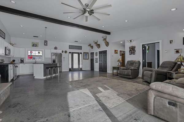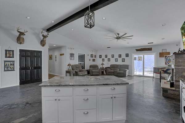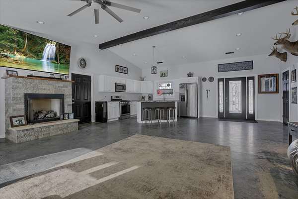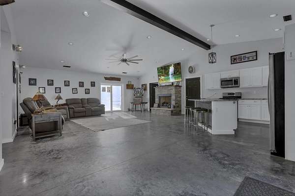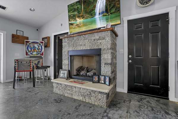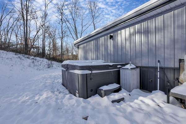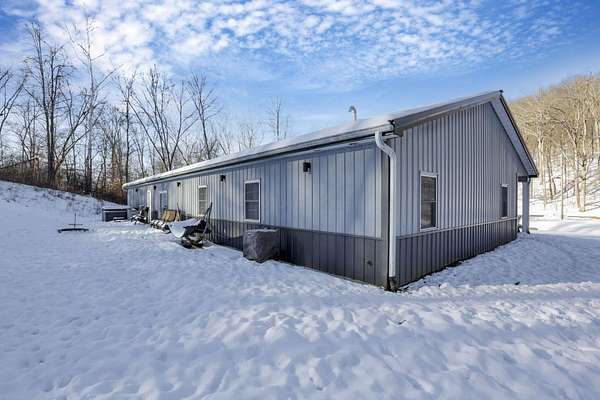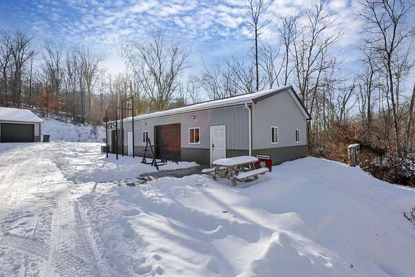 SO many possibilities with this beautiful 5-acre property. The main home is a modern open-concept living home with vaulted living space, granite kitchen with stainless steel appliances, island with seating, plus dining space and living area with gas fireplace. This home features 3 beds + 2.5 bathrooms, including a private primary suite with double closets, soaking tub, shower, and double vanity. The whole home has cozy heated concrete floors. With a covered front porch and concrete pad out back, complete with hot tub and firepit, there are plenty of options for indoor/outdoor living space and connecting with nature. The main home also has an attached, heated 2+ car garage, boiler for endless hot water, and hardwired security system. This property also offers a second finished detached garage with 2 full bathrooms. All of this on 5 beautiful acres with a perfect combination of flat yard space, wooded hillside, and trickling stream. This would make a perfect primary residence, family compound, 2 separate homes, workshop, or an investment property. The options are limitless here. Just minutes to town and all the conveniences of Logan.