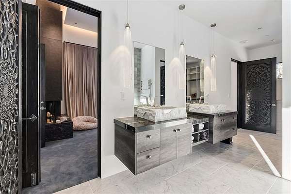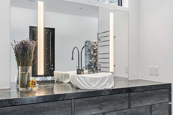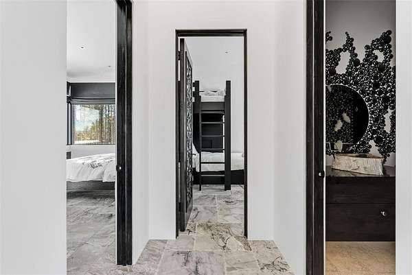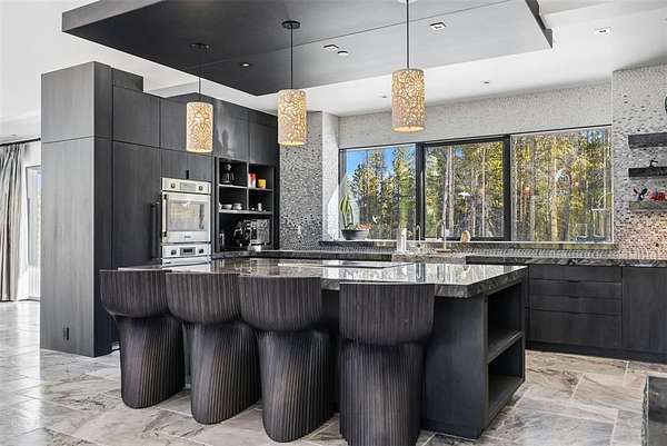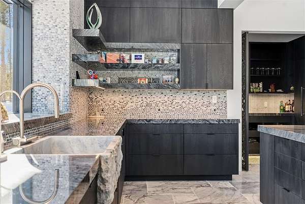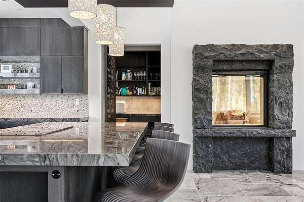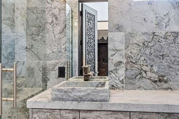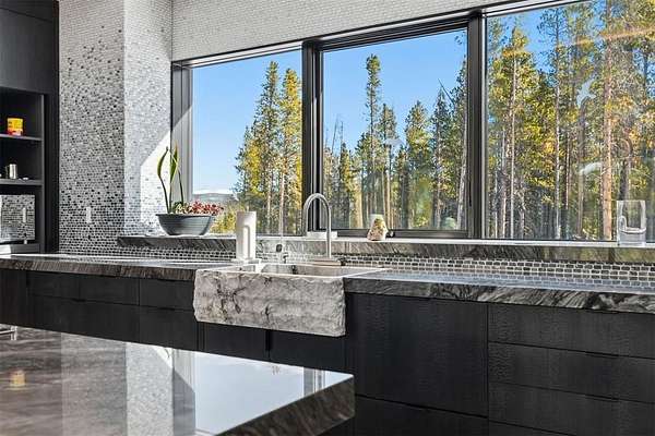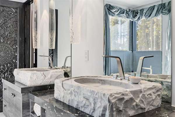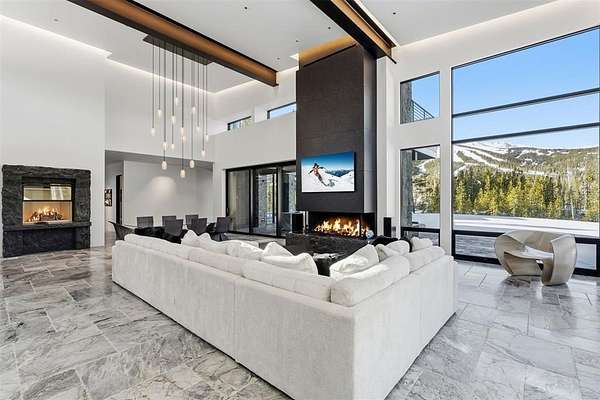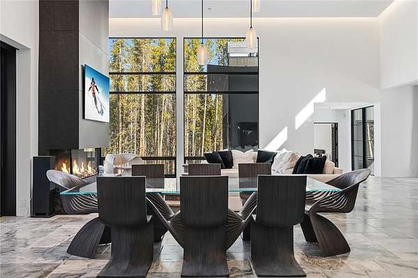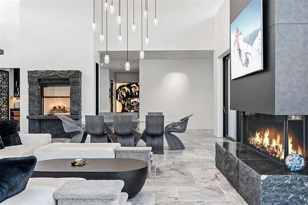 A masterclass in modern alpine design, the home utilizes steel-frame construction to achieve soaring spans and expansive curtain walls of glass that dissolve the boundary between the interior and the rugged landscape. Every room serves as a lens through which to view the peaks and sky. What distinguishes this estate is a level of finish that transcends standard luxury; these elements were commissioned as fine art, not merely selected. The home is fundamentally irreplaceable, featuring masterpiece entry doors that took nine craftsmen three years to sculpt, hand-carved marble basins, bespoke fireplaces, and intricate mosaics created in Marrakech.