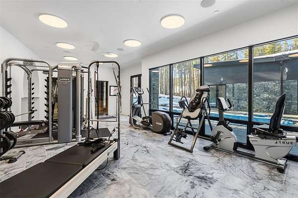 The primary sanctuary features a dramatic two-ton stone installation and a dedicated high-altitude oxygen system. Designed as a self-contained retreat, the home offers resort-level amenities: an outdoor pool and hot tub overlooking the slopes, sauna, steam room, cold plunge, professional golf simulator, gym, and a private artist's gallery. Modern sophistication is ensured via radiant heating, a three-car heated garage, and full smart-home integration. With 10 acres of autonomy and the National Forest as your permanent backyard, this is a legacy property for the collector who demands absolute privacy. A rare marriage of craftsmanship and place.