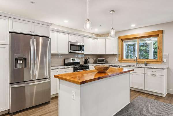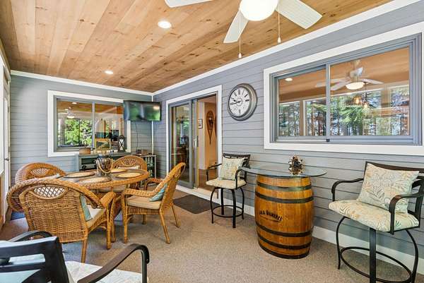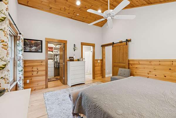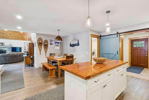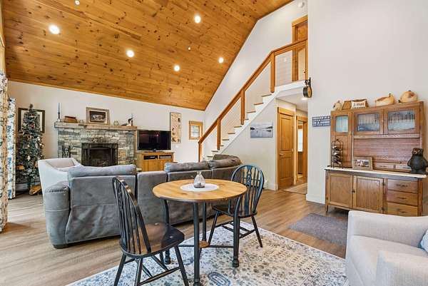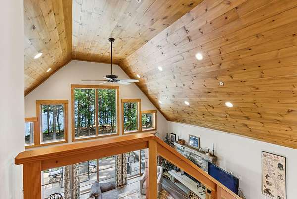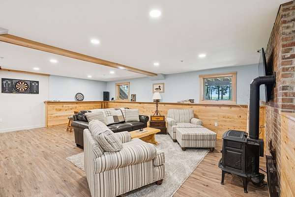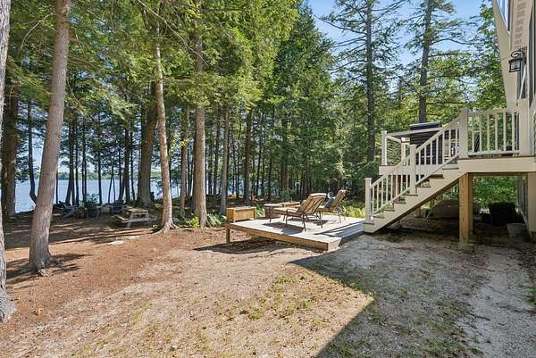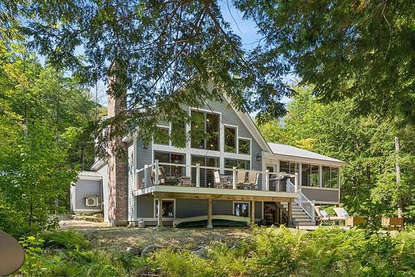 Welcome to your dream lakefront retreat on beautiful Long Lake, where stunning sunsets set the scene for year-round enjoyment. Nestled on 5 private acres with an impressive 260 feet of water frontage, this 4-bedroom, 3-bathroom home (plus office/optional 5th room) offers both comfort and rustic charm in a breathtaking setting. Enjoy the best of lakefront living with your private dock, perfect for boating, swimming, and summer fun on the water. Inside, soaring wood cathedral ceilings extend through the living room area and up into the primary suite, where warmth and character set the tone for restful nights. A living room with a wood-burning fireplace and a family room with a gas fireplace create inviting spaces for gathering. The 4-season sunroom overlooks the lake, while the large deck is perfect for outdoor entertaining. A dedicated laundry room and mudroom with custom built-ins add convenience to the thoughtful layout. Additional features include a whole-house generator, 3-car heated garage, and most furnishings included, making this home move-in ready. With its proximity to skiing, you can enjoy the best of all seasons - from boating and lake life in the summer to cozy winter nights by the fire. This rare offering combines privacy, natural beauty, and timeless charm on one of Maine's most sought-after lakes.