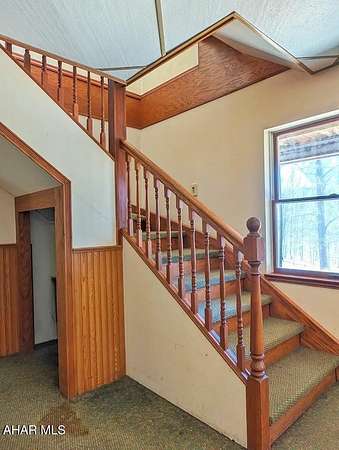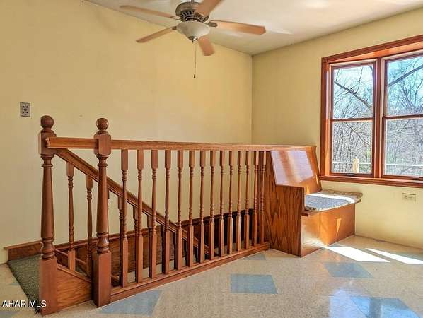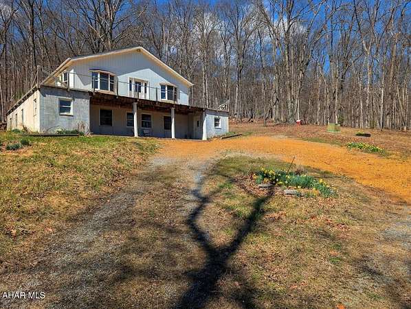 Escape to your own private mountain retreat with this custom-built home nestled on 20.95 acres of breathtaking Pennsylvania landscape. Offering total privacy, panoramic views, and direct access to Buchanan State Forest and the Mid State Trail, this property is a rare opportunity for those seeking space, seclusion, and connection to nature. The upper level features a spacious great room with open-concept living, dining area, and kitchen, complemented by a large walk-in pantry, office space or den, and half bath. French doors lead to a wraparound porch perfectly positioned to take in sweeping mountain views. The second level offers incredible flexibility, featuring a full secondary kitchen with adjoining laundry area--ideal for hosting extended family, multigenerational living, or flexible use. This level also includes three bedrooms, two full baths, and access to a front porch. The inground basement level provides additional space for a workshop, home gym, or storage, complete with a wood-burning stove. An oil furnace and tanks are present but not currently connected. Outside, the property truly shines with a three-car carport, charming two-story spring house, and a peaceful creek winding through the land. Enjoy nearby recreation with state game lands, excellent fishing just minutes away in Flintstone and Town Creek, and quick access to Rocky Gap Casino Resort and Golf, and I-68. While the home requires updates and finishing touches, the setting is simply unmatched. Whether you're searching for a private residence, retreat, investment opportunity, or legacy property, this land delivers the kind of beauty and potential that's increasingly hard to find.