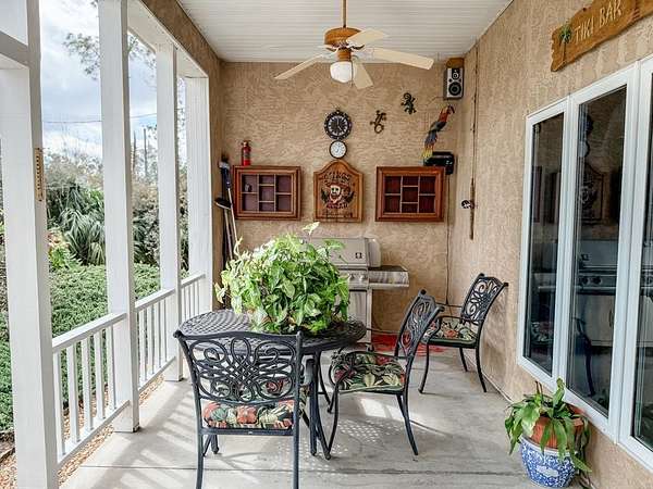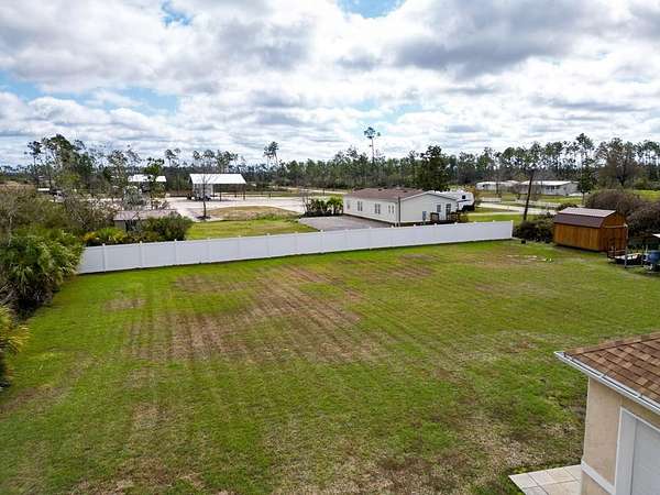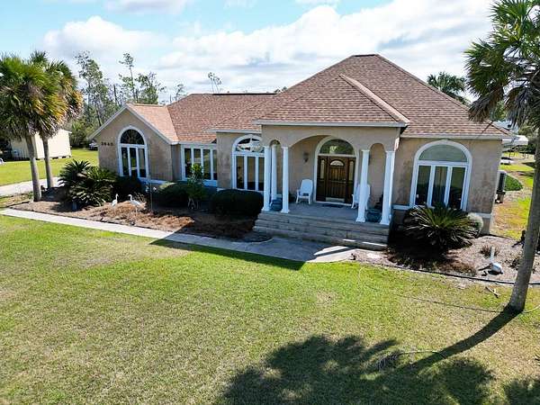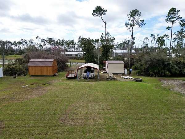Nestled on 1.95 acres corner lot in a private setting, this stunning custom home offers everything you need for comfortable living. This move in ready beautifully designed stucco home boasts 1,872 square feet of heated and cooled living space, featuring 3 spacious bedrooms and 2 bathrooms. The open floor plan includes a large living room, dining area, and a custom kitchen equipped with wood cabinets and modern appliances. The split bedroom layout enhances privacy, making it ideal for families or guests. Gather around the cozy fireplace in the living room during cooler evenings. Outdoor Oasis - this large backyard with ample room for a pool, all of your toys, and RV parking. Enjoy evenings by the 5-foot firepit , perfect for gatherings with family and friends. Peace of mind comes with the recent upgrades to the home, including a new shingle roof installed in 2019 and a water heater replaced in 2022. The property is in the Desired X Flood Zone. For those who enjoy DIY projects or need space for hobbies, this custom home comes with multiple sheds and a car/boat port: - Shed 1- 12 x 12 with electric, shelves, and workbench - Lean-To 12 x 12 open structure with workbench and outdoor lighting - Shed 2 -12 x 16 with electric, shelves, workbench, and attached lean-to with security light - Shed 3 - 10 x 16 with lofts at each end for additional storage - Car/Boat Port - 12 x 21 open-air structure with metal sides - Attic Loft - 18 x 8 in the attached garage for extra storage. Safety is a priority with the home's 8-camera security system, ensuring peace of mind. Additionally, the property is serviced by a 420-foot well, providing ample water for yard maintenance. A perfect location located just 3 miles from the pristine beaches of Mexico Beach, this home offers the best of both worlds--secluded living combined with easy access to coastal activities. These homeowners left nothing undone when building this home. See additional list of upgrades in documents. Lots of extra's