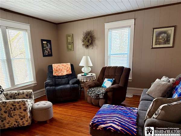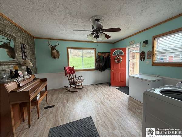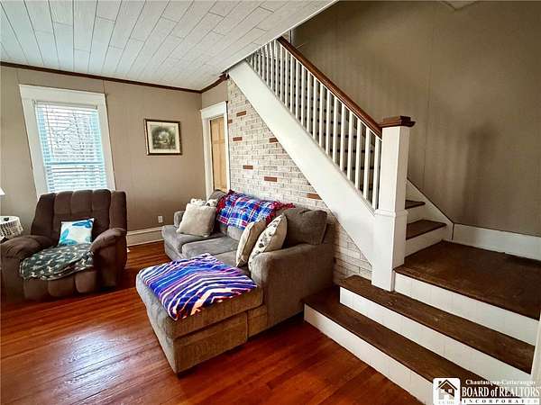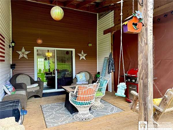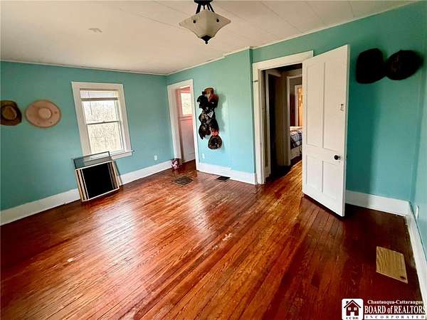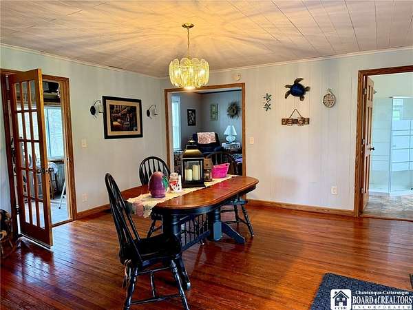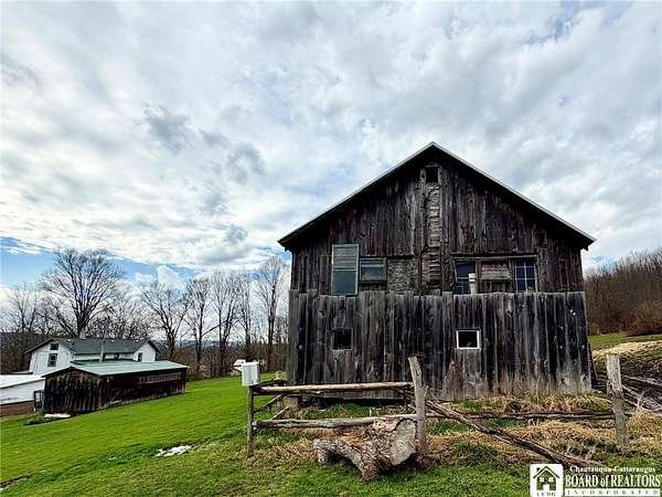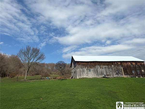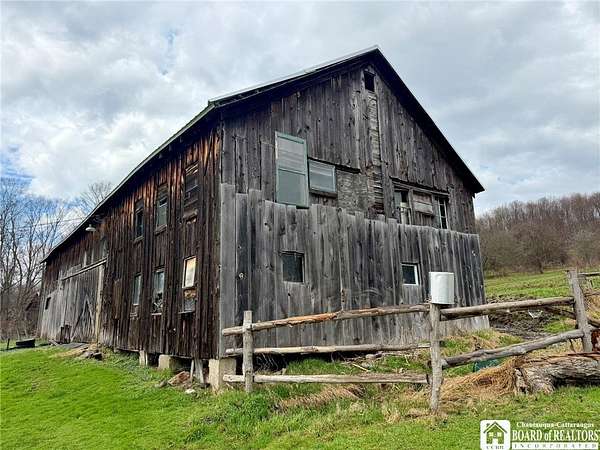 Peaceful country retreat on approximately 22 acres, featuring a 2,000 sq ft home full of charming farmhouse style. The property includes a gas well supplying free gas, adding a unique and valuable feature. Enter through a spacious entry room, perfect for storing hats, coats, boots, and outdoor gear, with convenient first-floor laundry. The eat-in kitchen offers quality cabinetry, and there is also a separate dining room. An enclosed front porch provides bonus space, and the living room is full of natural light. Upstairs, the home has three bedrooms, with two connected via a small pass-through closet - a unique layout that adds character and versatility. A first-floor room off the living room could serve as a guest room or additional bedroom. From the back deck, enjoy views of the surrounding countryside and the majestic historic barn. The property also includes a detached garage and additional outbuilding. Enjoy a mix of clearings, pasture, and wooded areas, plus a small pond. The elevations provide magnificent views of the surrounding landscape. Recently used for horses, the barn could possibly accommodate farm or equestrian activities. Updates include a new metal roof scheduled to be completed before closing, a new furnace, and a newer hot water tank. Property is part of a larger 42-acre parcel and is being thoughtfully subdivided to offer approximately 22 acres of serene country living, subject to final survey and deed. The home is served by a private well and septic system and will benefit from a shared access easement to the seller's retained land and this home's existing gas well. If you've been dreaming of wide-open spaces in the Falconer school district, this is a rare opportunity to make it yours!