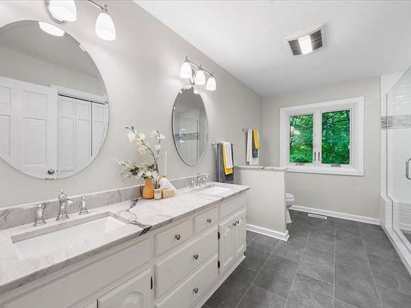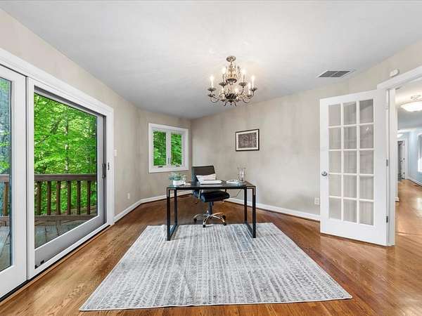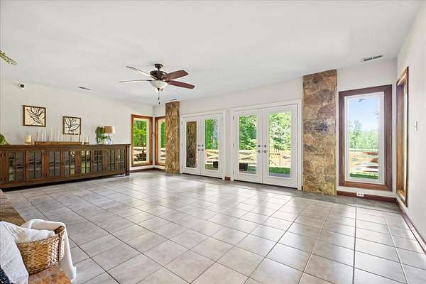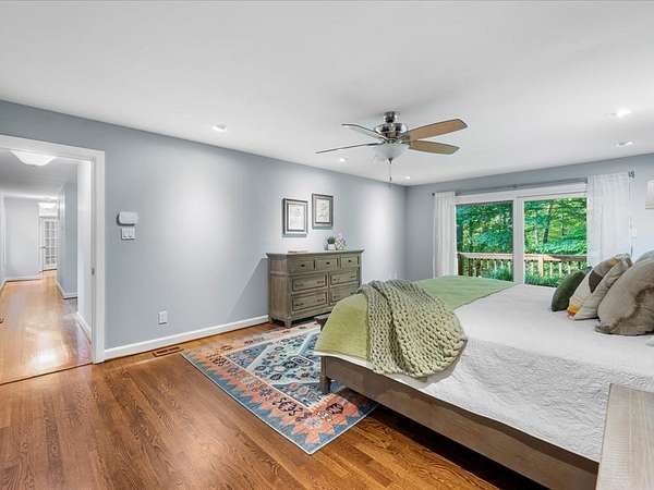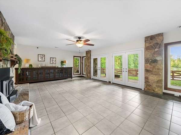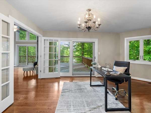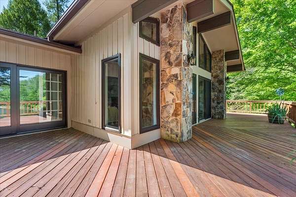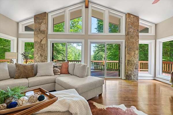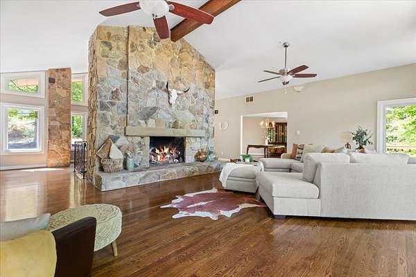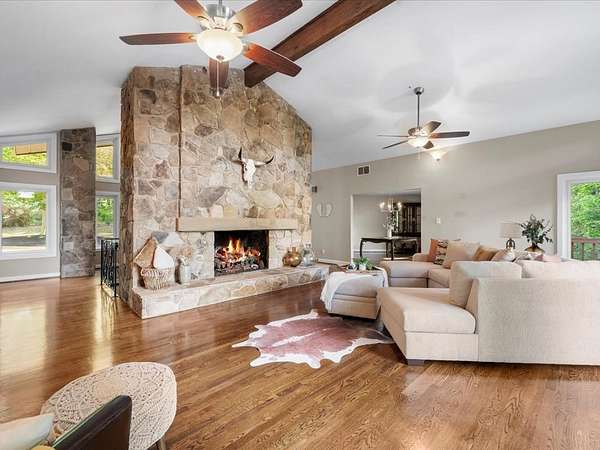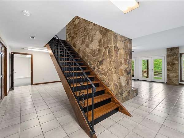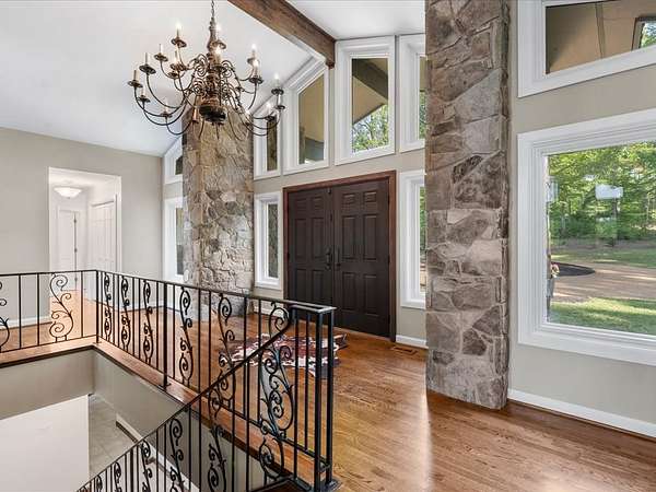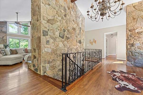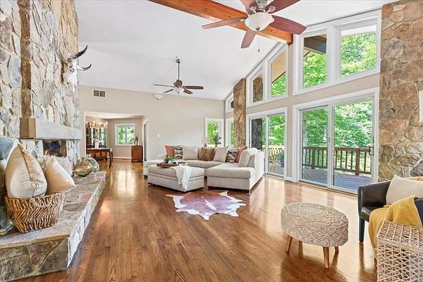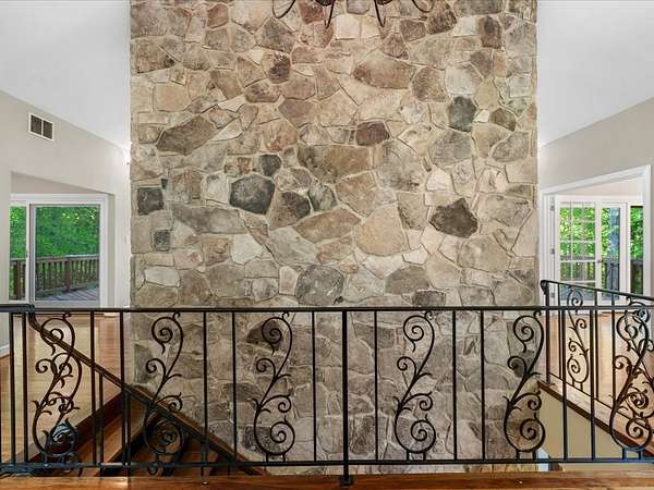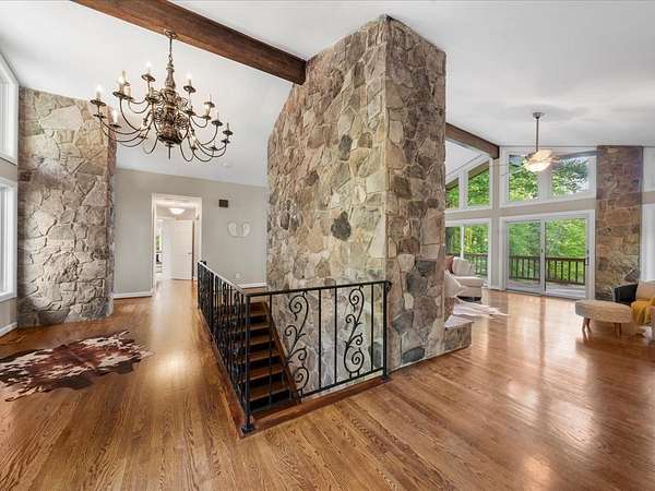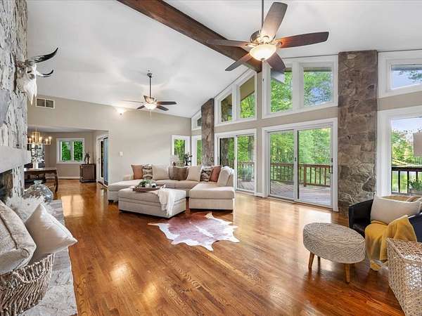 Escape to your own private paradise on 11.39 acres in the heart of Powhatan, just seconds from the James River. This custom waterfront estate blends rustic elegance with modern luxury, creating a home that's both inviting and impressive. Natural stone, rich wood details, and striking lines set the tone as you approach. Inside, vaulted ceilings, walls of glass, and a soaring stone fireplace frame sweeping views of the pond and woods beyond. Designed for everyday living and entertaining, the main level features a chef's kitchen with leathered quartz counters, central island, and premium appliances, flowing into formal and casual dining spaces. You'll also find a dedicated office, dining room, laundry/mudroom, half bath, attached garage access, and three bedrooms including the primary suite. The primary offers four closets, a spa-like bath with soaking tub and walk-in shower, and a private balcony over the water. A finished walk-out basement adds a second fireplace, living area, bedroom, baths, and flex rooms. Outdoor living includes a full-length deck, covered patio, fenced yard, and peaceful water views--just minutes from Route 60, Route 288, and Short Pump.