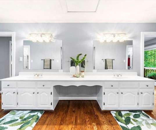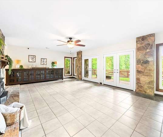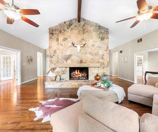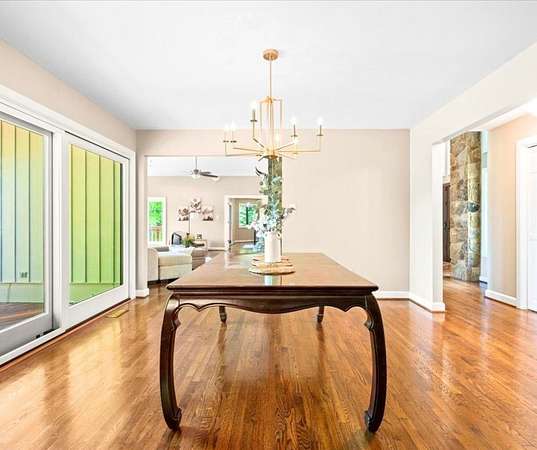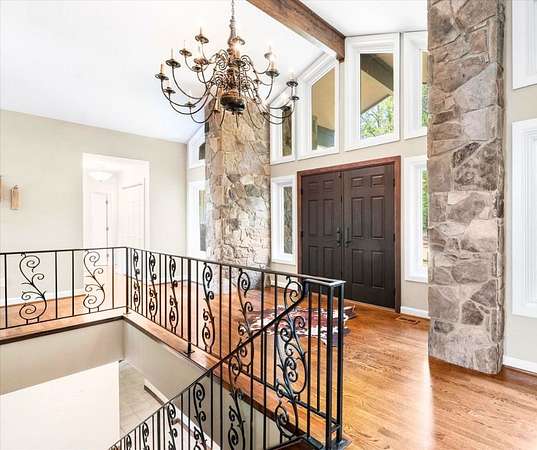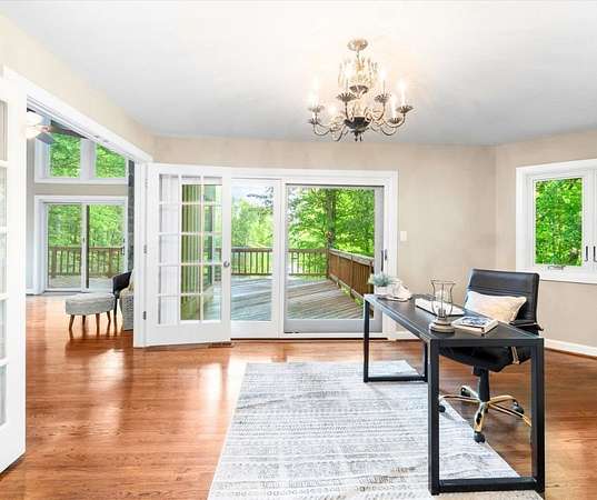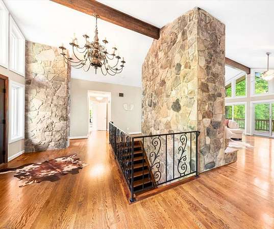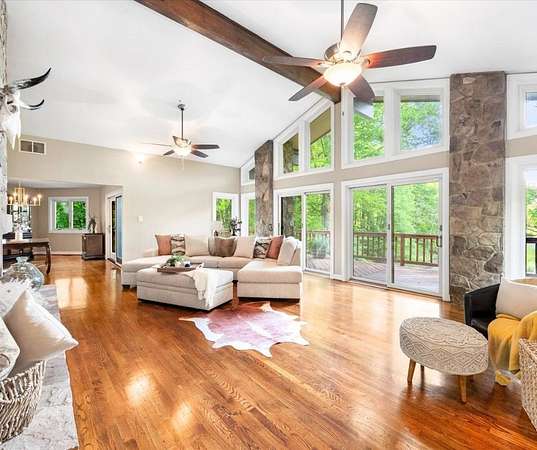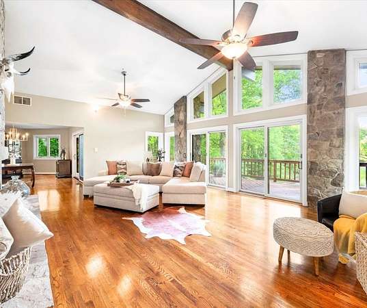 Waterfront estate offers a rare blend of seclusion, design, and convenience—located just seconds from the James River and only minutes to Route 60, Route 288, and Short Pump. dramatic great room anchors the home, where soaring vaulted ceilings, walls of glass, and a stunning two-story stone fireplace frame serene views of the pond and surrounding woods. The main level also includes a private office, a well-appointed mudroom and laundry space with built-ins, a half bath, and direct access to the attached garage. Three bedrooms are located on this level, including an exceptional primary suite designed as a true retreat. The walk-out lower level expands the home's versatility with a second fireplace, a spacious living area, a fourth bedroom, full and half baths, and two additional flex rooms—perfect for a gym, workshop, guest space, or hobby areas. The fenced yard provides the perfect space for pets or play, all surrounded by mature trees and water views that create a true sense of escape.