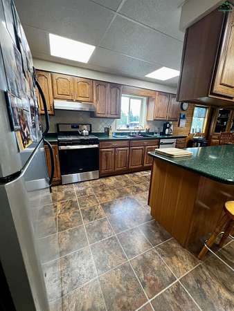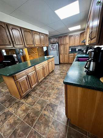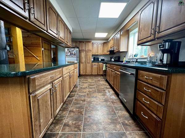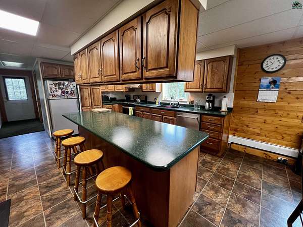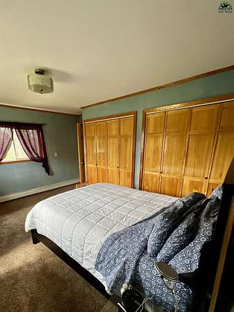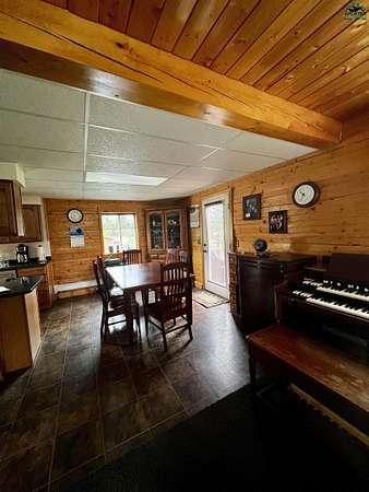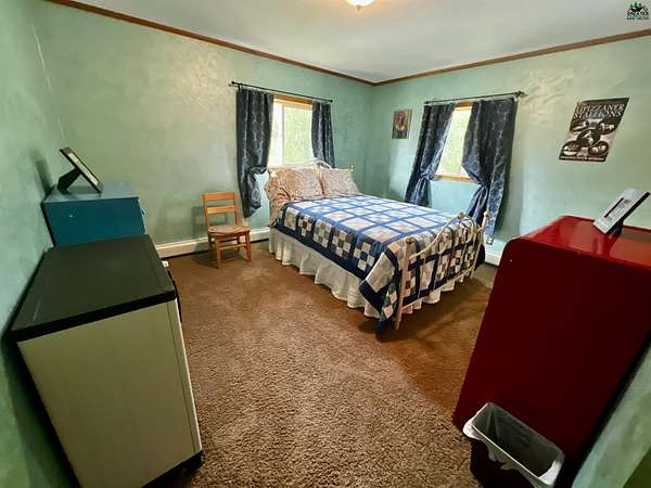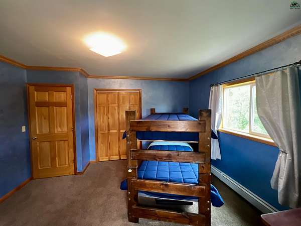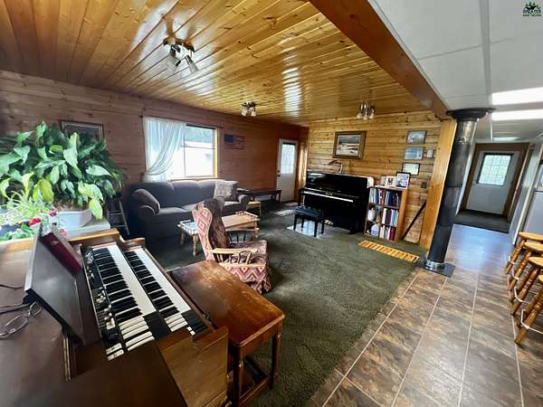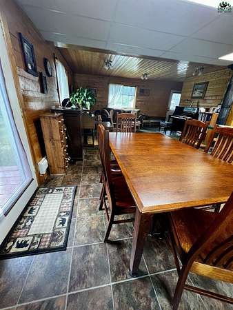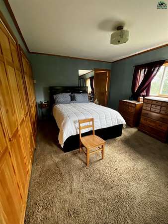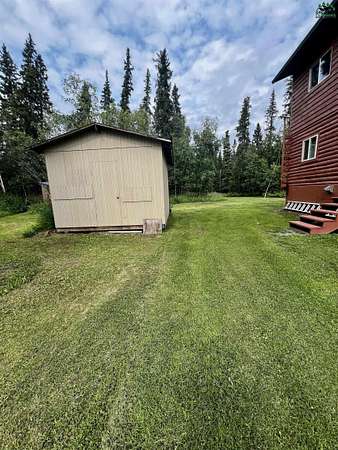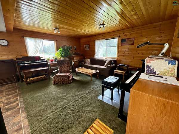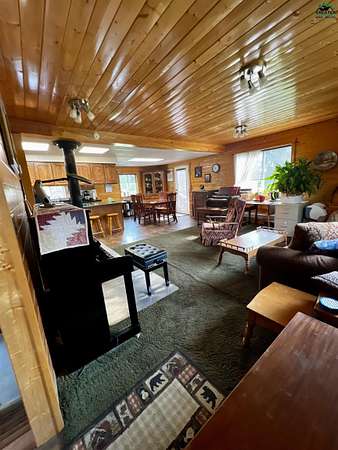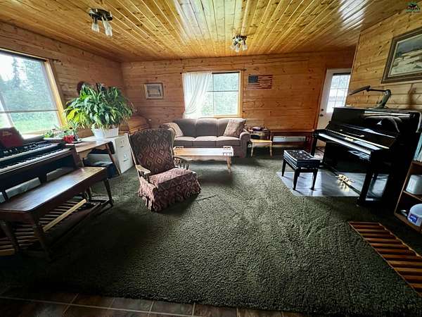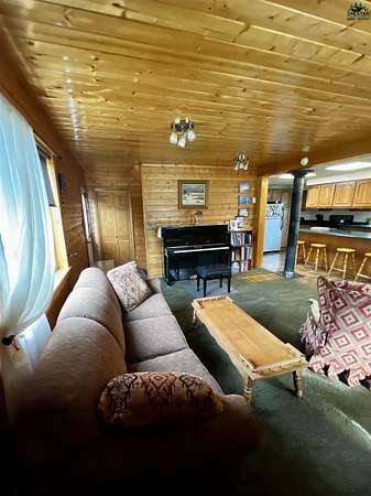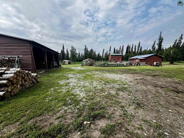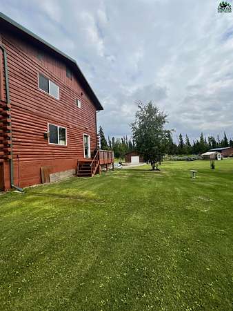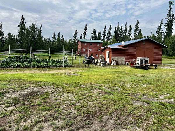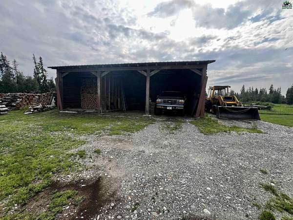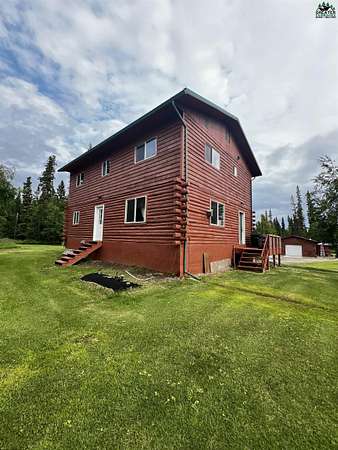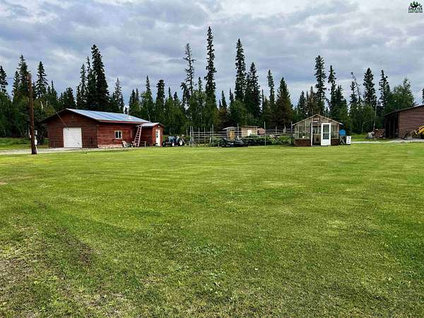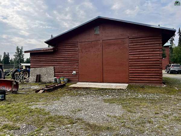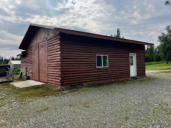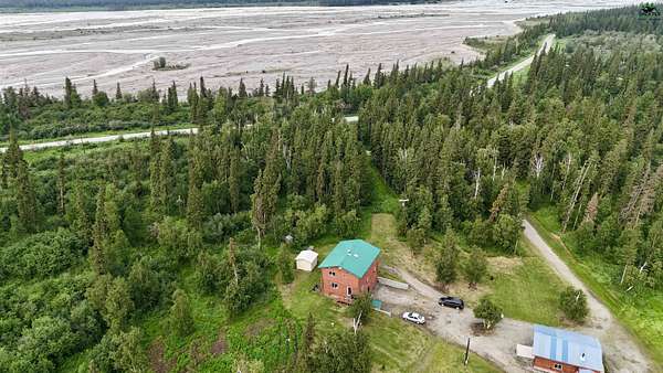 Rare opportunity to own 51 acres of fee simple land with Delta River frontage, just minutes from town -- a truly unique find in Delta Junction! This well-kept, one-owner home was built in 2010 and offers three levels of comfortable living, with 4 bedrooms and 3 bathrooms. The walkout basement features durable 10-inch poured concrete walls. The main level includes a spacious kitchen, dining and living area, plus one bedroom and a full bath. Upstairs you'll find the primary suite, two more bedrooms, two additional bathrooms, and an open office or second living room for extra flexibility. Inside, enjoy hand-painted walls, tongue-and-groove finishes, Corian countertops, and solid wood cabinets. The kitchen island has upper cabinets that open on both sides for convenience. The heating and boiler system were professionally installed by Alaska Best Plumbing. Outside, there's a fenced garden, a greenhouse with an oil heater, a large planted yard and field, plus plenty of room for animals or future projects. The detached 2-car garage has its own heat and wood stove, and there's a 3-bay pole barn perfect for storing boats, tractors, equipment, or firewood. Additional outbuildings and storage sheds provide even more space. Large acreage with river frontage this close to town is a rare find -- don't miss your chance to own this unique Delta Junction property!