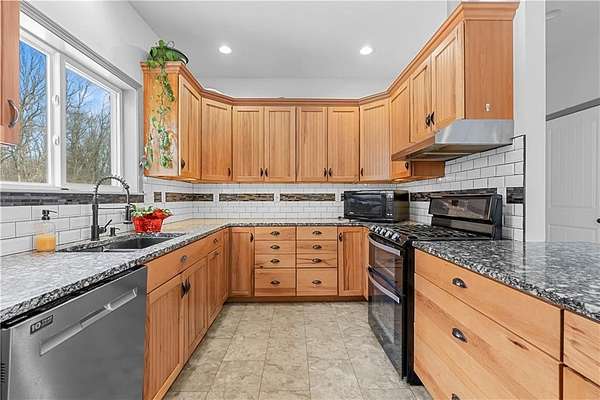 - Dishwasher, Exhaust Fan, Gas Range, Stainless Steel Appliance(s)