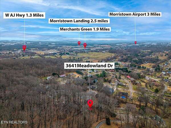 From I-81 Exit 12, take TN-160 toward Morristown. Continue to US-11E S, turn right on Kidwell Ridge Rd, then right onto Meadowland Dr. Property on right; see sign.