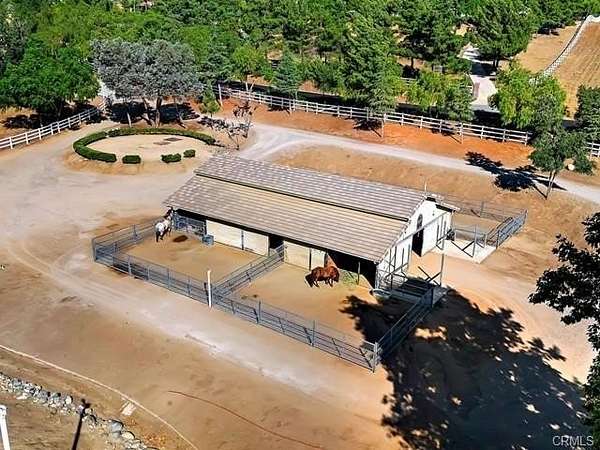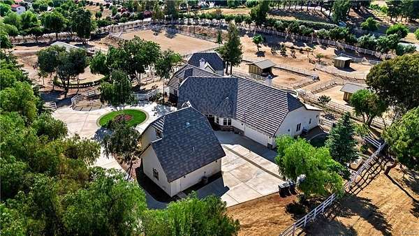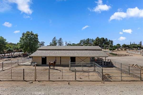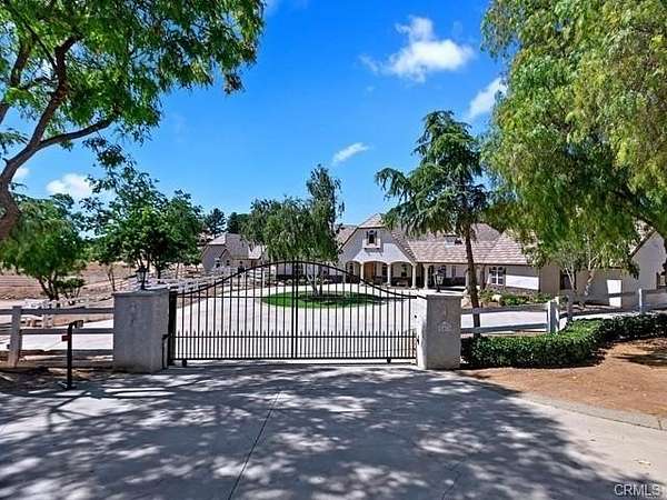 Beautiful custom estate nestled on 4.36 acres in the heart of Temecula Wine Country. Wrought iron gate entry leads to a circular drive with porte-cochere bridging main house with separate guest quarters, full bath and garage areas. This estate boasts 3,330 sq. ft of luxurious living. Main living is on the main floor with the master suite with retreat and fireplace. Jack & Jill bedrooms located at other end of home. An upstairs office or could be a bedroom with balcony. This beautiful home boasts 4 bedroom/3 bath, living room and family room with wood burning fireplace. The kitchen is well appointed with double ovens, lots of beautiful cabinetry, large island, stainless steel appliance, sub zero refrigerator and a walk in pantry. Fantastic outdoor covered living areas w/BBQ island overlooks pool with diving board and spa. Wifi remotely activated spa & pool controls. A separate guest house 750+- sq. ft. sleeps 4 with one bedroom and one bath, walk in closet, living room area with kitchenette. Wonderful covered patios in the front patio with a darling casita that sleeps 2 with 1 bedroom & 1 bath and walk in closet and garage. The horse facilites are fantastic with 6 stall barn with large breezeway, hay room, tack room and wash racks & grooming stalls. Huge working arena with lights approx. 100x200 ft. Large paddocks with covers. Lots of usable land with plenty of turnaround for trailers & RV's. RV pad with electricity, water and dumping station. All fenced and cross fenced with security gates. Centrally located with 1.5 hours to LA, San Diego, Orange County & Palm Springs. Temecula living at it's best!!