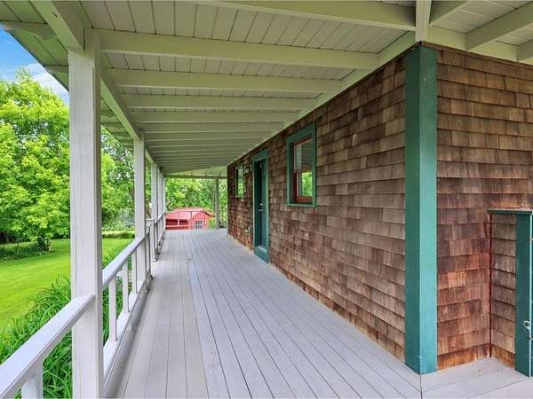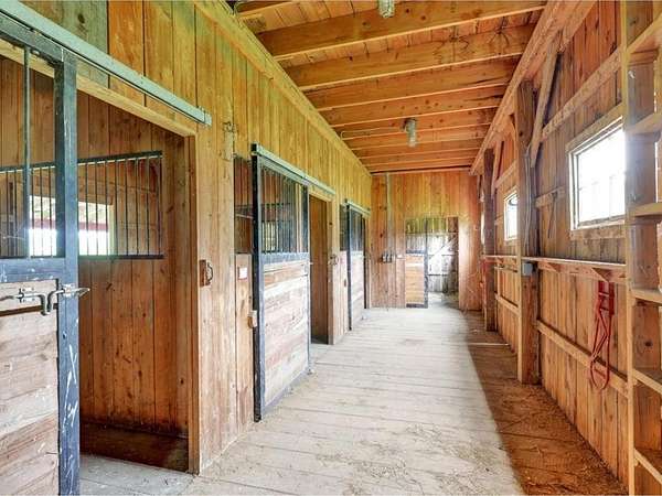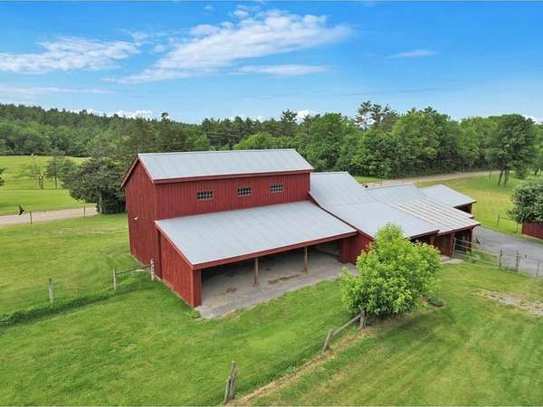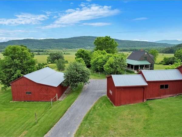 Set on 116 acres of rolling Vermont countryside with sweeping views and frontage along Little Otter Creek, this well-equipped horse farm offers both functionality and future potential. Approximately 30 acres are fenced and ready for horses or livestock, complemented by an impressive barn featuring five oversized 2" hemlock stalls—built for durability—even accommodating larger breeds, along with five versatile lean-tos, a hayloft with capacity for up to 1,000 bales, a spacious paddock, and a dedicated mare-and-foal stall. Additional outbuildings include a large equipment garage and gardening shed. The updated 2-bedroom, 1.5-bath home showcases a new kitchen with butcher block counters and a walk-in pantry, renovated baths, new flooring, fresh interior paint, a sun-filled wrap-around porch, and a walkout basement. A seller concession for kitchen appliances adds convenience, while a second permitted lot within the acreage offers valuable building potential. Ideally located in southern Monkton, just 10 minutes to Vergennes, 15 to Middlebury, and 45 to Burlington.