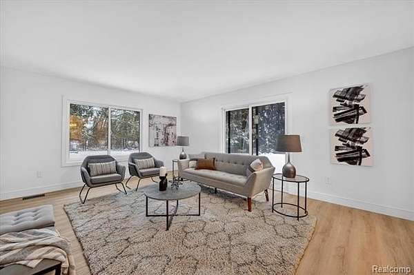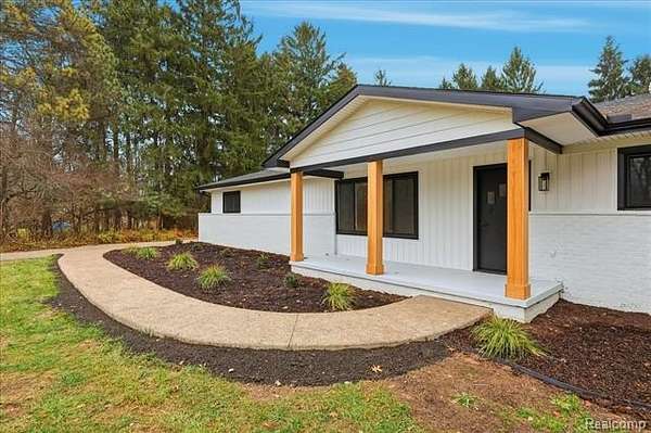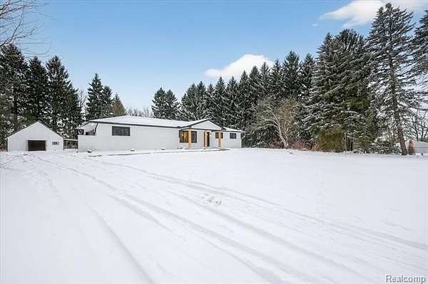 Location is everything--and this beautifully remodeled ranch delivers on EVERY level. Set on 2 acres with no association, this home includes a large pole barn, a shed, and is located on Noble Rd, an area known for expansive ranch homes and million-dollar equestrian estates. Offering over 1,400 square feet of living space, virtually everything in the home is brand new. The exterior has been completely updated with a new roof, porch, walkways, windows, and doors, all finished with a modern aesthetic. Inside, light flooring and fresh paint create a warm, inviting atmosphere and highlight the open floor plan. The brand-new kitchen features premium white cabinetry, quartz countertops, stainless steel appliances, and a spacious dining area. The family room is filled with natural light, includes a fireplace, abundant lighting, and a doorwall that opens to a new deck overlooking the expansive backyard. All bedrooms offer ceiling fans, recessed lighting, and multiple windows. The oversized, extra-deep attached 2.5 car garage has new doors and a new opener. Major mechanicals are also new, including the central air, furnace, and hot water tank. The fully finished basement features lighting and vinyl flooring, providing additional versatile living space. The large pole barn offers a clean slate for endless possibilities and ample space for recreational vehicles and toys. There is also a covered area ideal for RV or boat storage, along with a small shed for landscaping equipment and tools. This is a rare opportunity to enjoy acreage, a prime location, and excellent schools with absolutely nothing left to do. A true must-see. Propane contract to be transferred to the new buyer. Home has been physically staged and shows fantastic!
