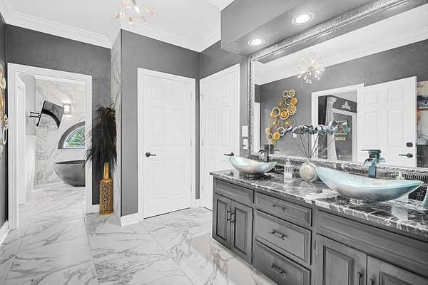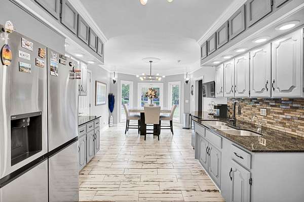 If you're seeking a home that offers both privacy and convenience, this estate offers a 5 bedroom home with 4.5 bathrooms along with a mother-in-law suite. The main floor boasts a spacious master suite complete with an intimate sitting area, fireplace, his and hers walk-in closets, new tile flooring and a remodeled ensuite bathroom. The renovated kitchen features a modern vent hood, new flooring, new appliances, new backsplash, paint, double ovens, ample counter space and an abundant butler's pantry with a dine-in breakfast nook. Adjacent to the kitchen, a private courtyard invites you to enjoy alfresco dining or simply unwind in a serene outdoor setting boasting outdoor lighting and a mounted TV for those lovely evenings. For those in need of a dedicated workspace, an office/family space with a beautiful view of the yard will ensure productivity without compromising on tranquility. Connected via an enclosed breezeway, the two-car garage and guest wing are seamlessly integrated into the property. The expansive almost 3-acre lot provides plenty of room for outdoor activities, gardening, or simply appreciating the stunning natural surroundings. This custom built property truly represents the epitome of luxury living with a well-designed floor plan, high-end finishes, and attention to detail throughout including new lighting throughout, lots of updates, new water heater, new flooring, new granite bathroom vanities, vessels, and a complete master bathroom remodel. Additionally, a new 30 x 24 detached garage was built in 2025 for additional storage and parking. New pool pump, new salt cell for pool (2025), new pool heater (2025), pool repainted with epoxy paint (2025), hot tub is included with purchase. The house has a Vivint security system that can be transferred into the new owner's name if they desire to purchase.