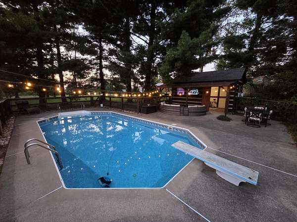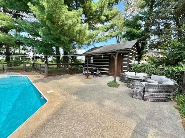 Move into your Dream Log Cabin just in time for the Holidays!! This may be the most convenient, relaxing home & acreage on the market! Sitting at the end a of a long gravel drive, just off of the Graves Road exit and just minutes to the Airport & Kroger's, but it feels like you're living in your own forest. Cabin is Perfectly placed on nearly 3 Park-Like level acres. Land is both cleared and wooded & has the feel of your own personal Zen Garden with trails and plenty of serene quiet nooks to meditate and enjoy peace! The Cabin provides an Open Warm Atmosphere with Cathedral Ceilings, Reclaimed wood floors installed with original square nails & a stone WBFP-Enjoy the 15X30 Inground pool, up to 10' in depth w/ Pool House-The sellers Love Love Love sitting on the front covered porch in a rocking chair & gathering w/ family and friends on the rear covered porch listening to the children Splash, Laugh & Play! It's truly an Entertaining Paradise!! Have Horses? One of the closest neighbors being Joe Brown Stables and if Fishing & Sporting Clays are your thing, Dutchman's Rod & Gun Club is just across the road.. Oversized detached garage w/ toy carport-Low utility bills w/ supplemental woodburning stove in basement.