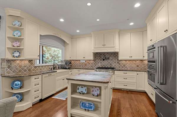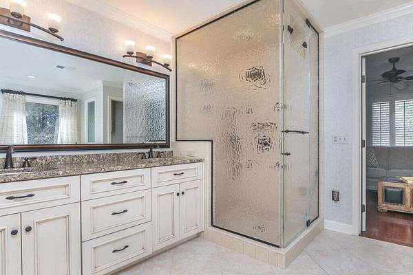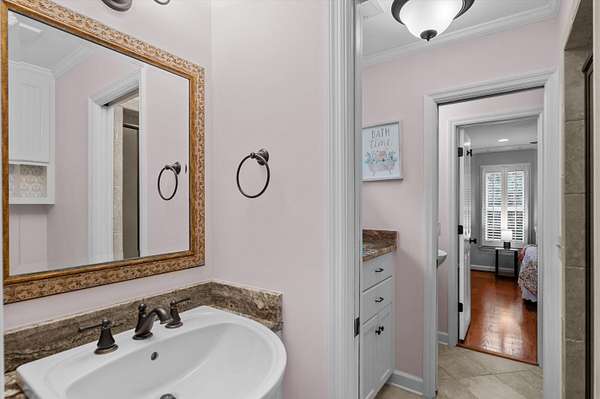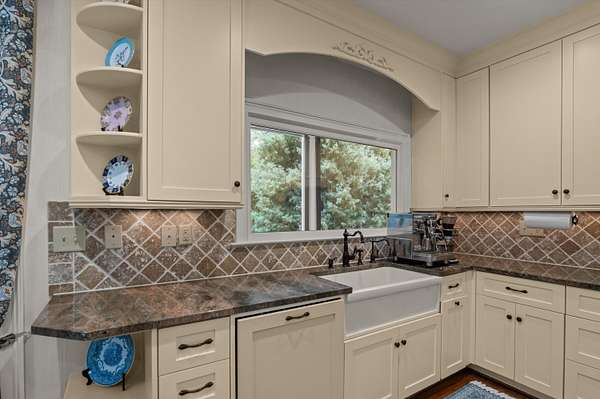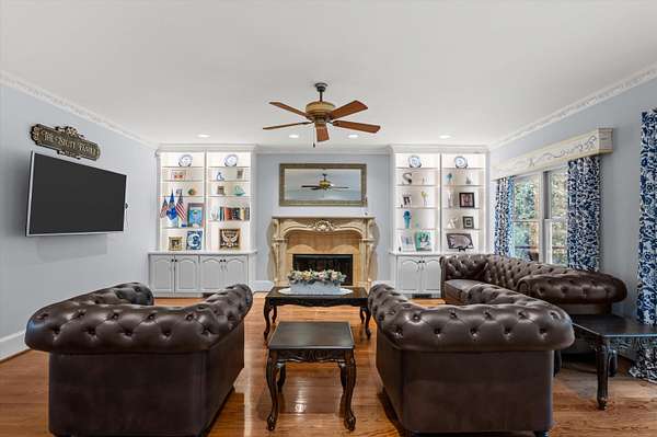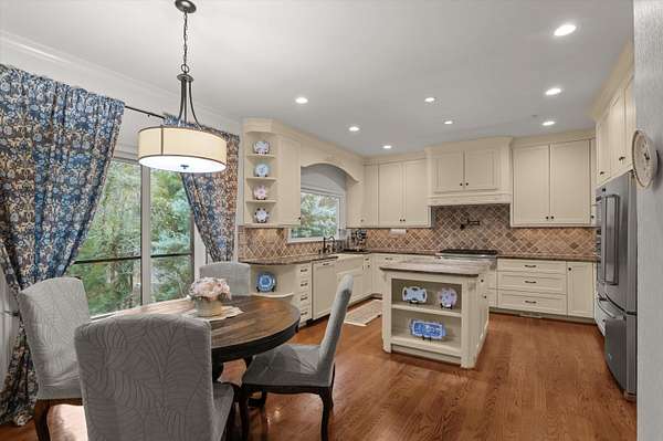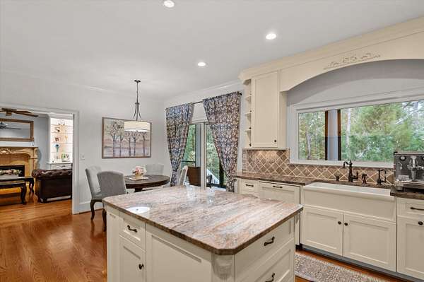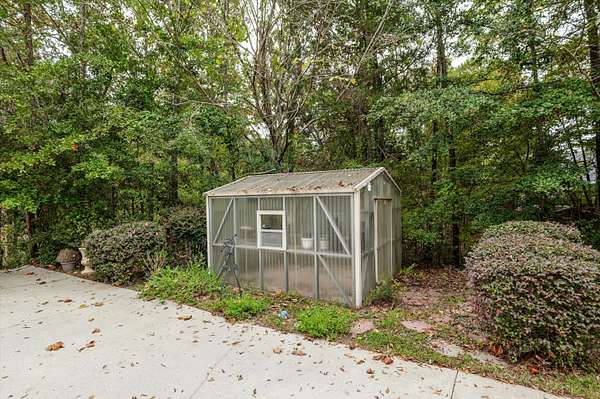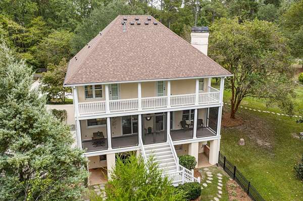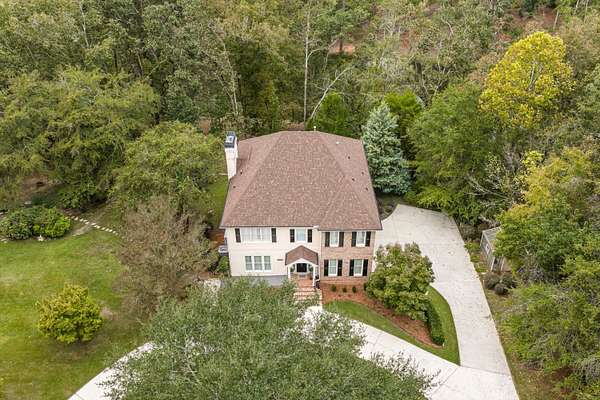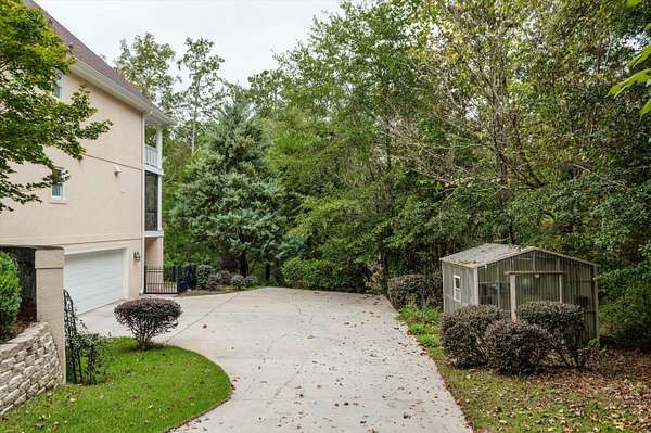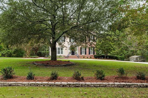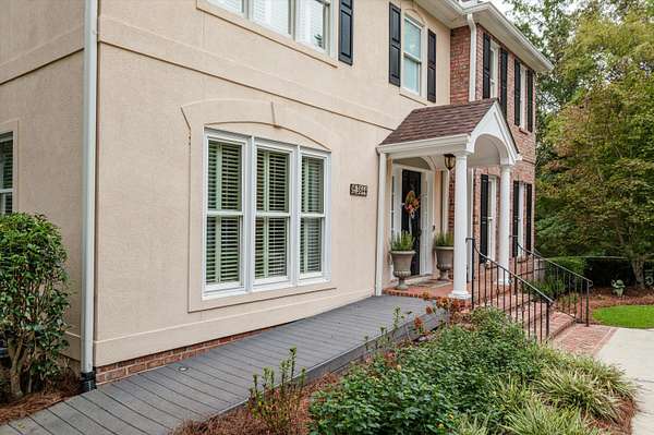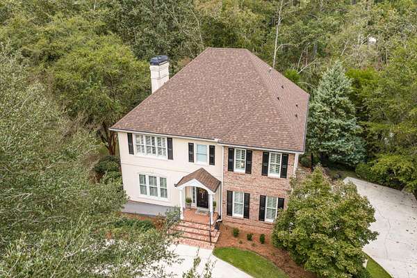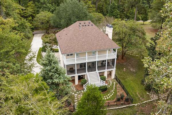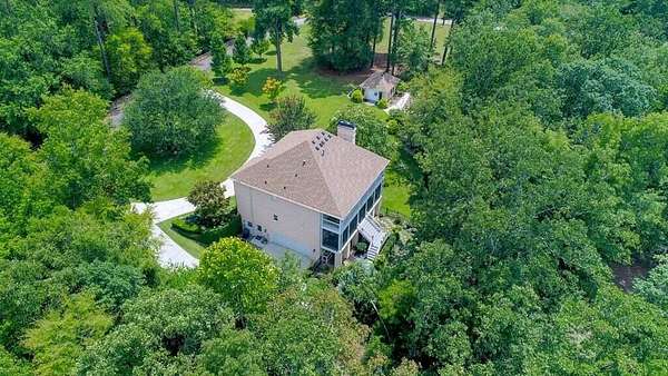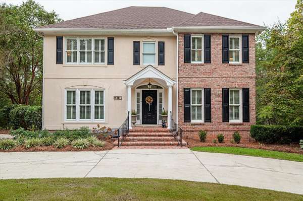 Nestled on 2.88 serene acres along a private road with the picturesque stocked pond, this charming home blends classic elegance with modern comfort. Inside, you'll find hardwood floors, detailed moldings, granite countertops, and plantation shutters. The welcoming foyer opens to a formal living room/study and a formal dining room, setting the tone for elegance. A spacious family room showcases an ornamental fireplace framed by custom built-ins and flows seamlessly to a screened porch for year-round enjoyment. The chef's kitchen is a true highlight, featuring floor-to-ceiling cabinetry, a center island, farm sink, walk-in pantry, built-in espresso maker, and premium Monogram appliances-including a 6-burner gas range, oven, and microwave. Upstairs, the luxurious primary suite offers a cozy fireplace, keeping room, private balcony, walk-in closet with custom built-ins, clawfoot tub, and walk-in shower. Two additional bedrooms share a Jack & Jill bath with separate vanities. The lower level includes a versatile recreation room, walk-in wine closet, private bedroom suite with built-in desk and patio access, large laundry room, and a spacious two-car garage with extra storage. Outdoors, the property boasts a greenhouse with power and water, and a detached workshop. Conveniently located to the Medical District and top rated Columbia County Schools. Ideal tournament rental!