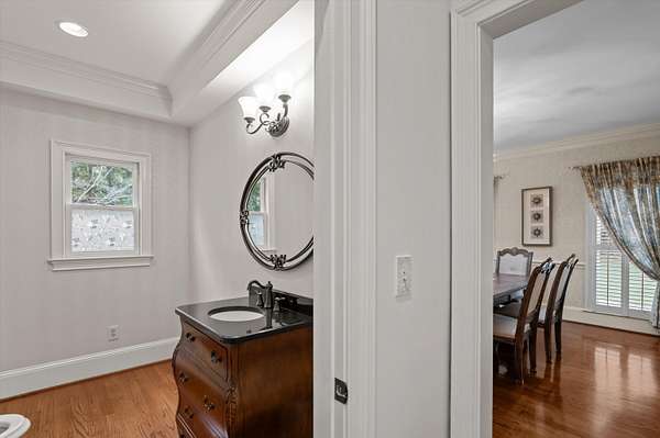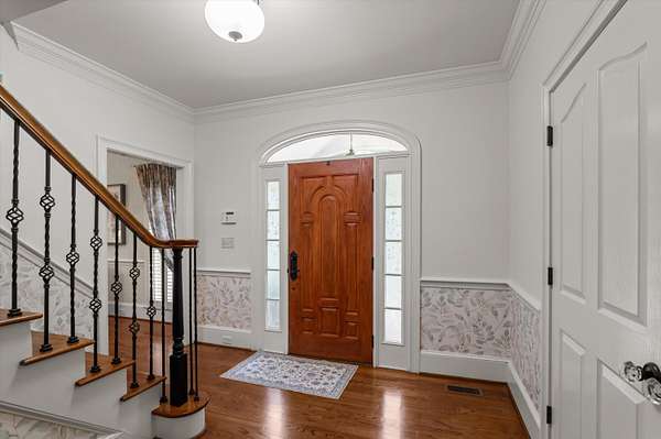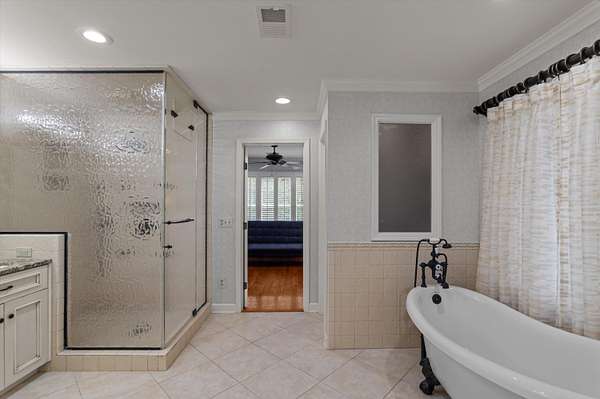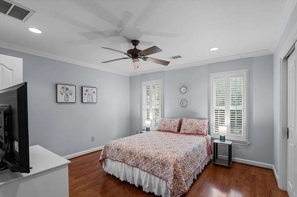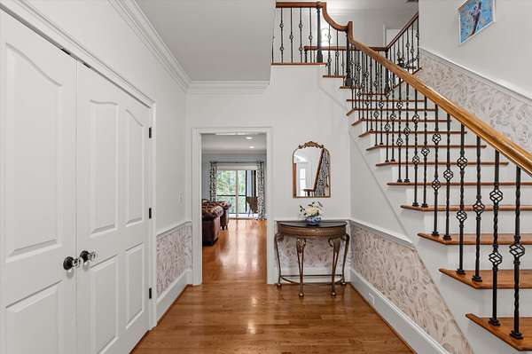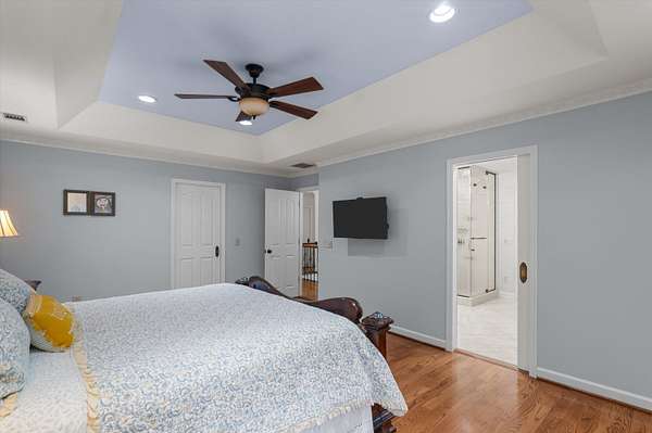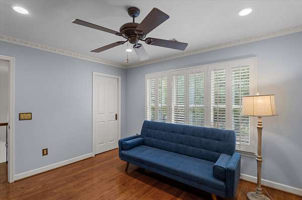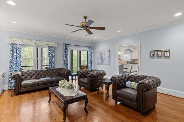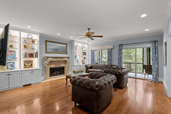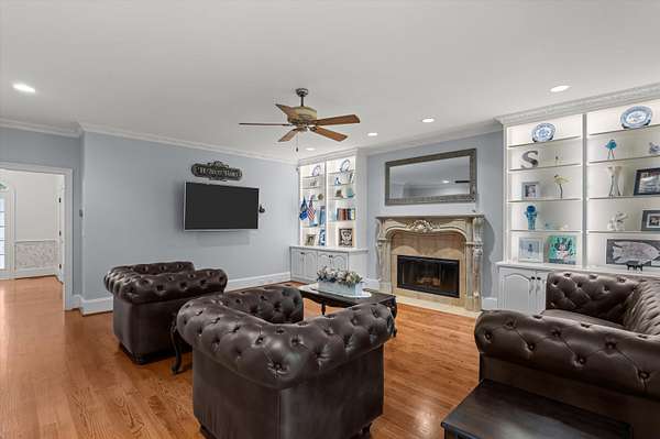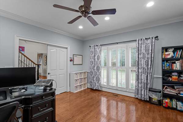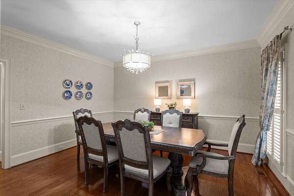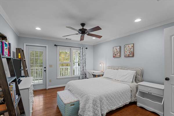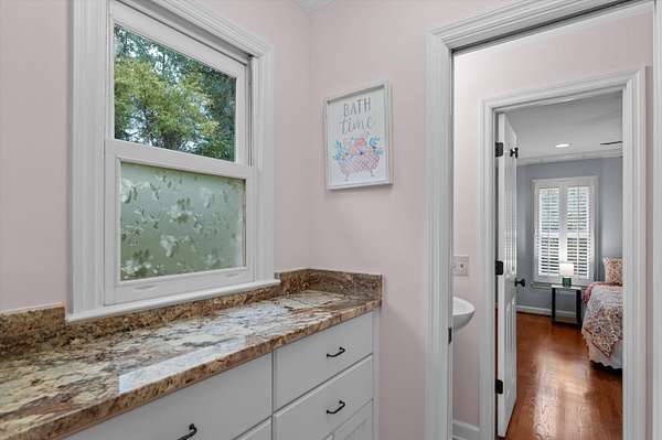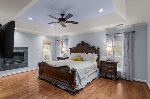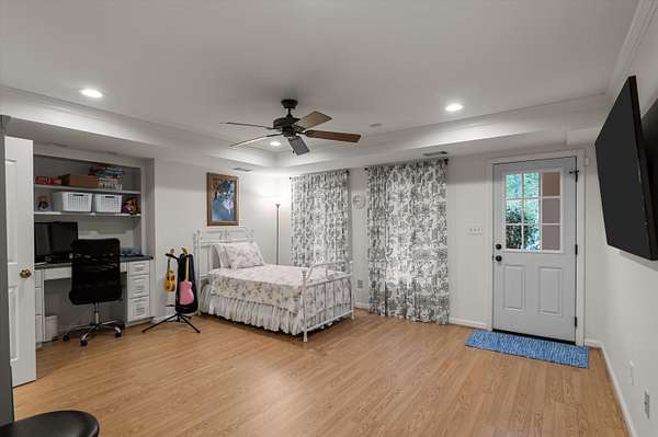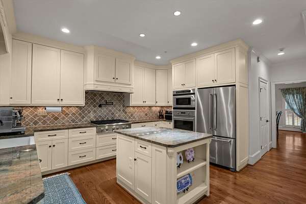 Nestled on 2.88 serene acres along a private road with the picturesque stocked pond, this charming home blends classic elegance with modern comfort. Inside, you'll find hardwood floors, detailed moldings, granite countertops, and plantation shutters. The welcoming foyer opens to a formal living room/study and a formal dining room, setting the tone for elegance. A spacious family room showcases an ornamental fireplace framed by custom built-ins and flows seamlessly to a screened porch for year-round enjoyment. The chef's kitchen is a true highlight, featuring floor-to-ceiling cabinetry, a center island, farm sink, walk-in pantry, built-in espresso maker, and premium Monogram appliances-including a 6-burner gas range, oven, and microwave. Upstairs, the luxurious primary suite offers a cozy fireplace, keeping room, private balcony, walk-in closet with custom built-ins, clawfoot tub, and walk-in shower. Two additional bedrooms share a Jack & Jill bath with separate vanities. The lower level includes a versatile recreation room, walk-in wine closet, private bedroom suite with built-in desk and patio access, large laundry room, and a spacious two-car garage with extra storage. Outdoors, the property boasts a greenhouse with power and water, and a detached workshop. Conveniently located to the Medical District and top rated Columbia County Schools. Ideal tournament rental!