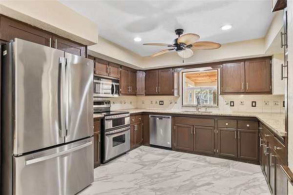Escape to your own private country retreat on nearly 6 acres in Myakka City. Set deep within the property, this spacious home offers exceptional privacy and a peaceful lifestyle away from traffic and noise. Enjoy brand-new stainless-steel appliances, fresh paint inside and outside, and updated new ceramic flooring throughout the entire house. The generous primary suite includes a large walk-in closet, and the property is beautifully framed by mature trees, palms, and natural landscaping.