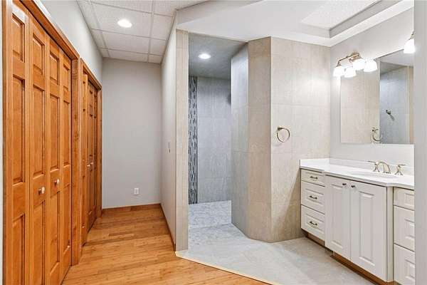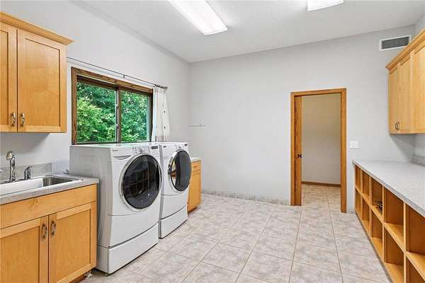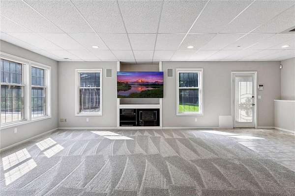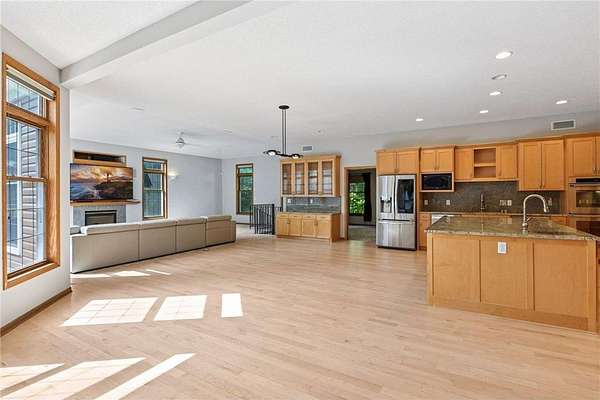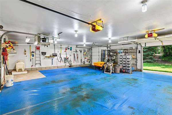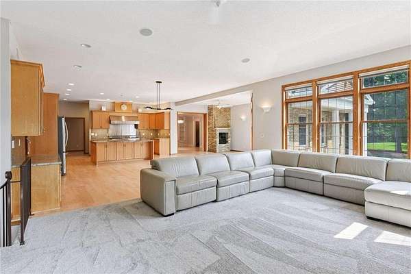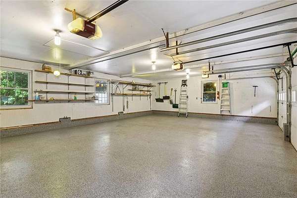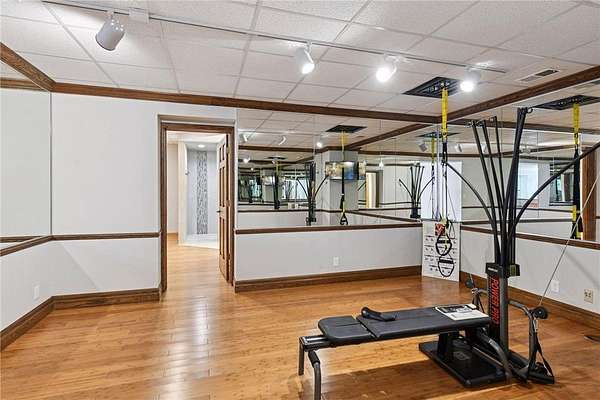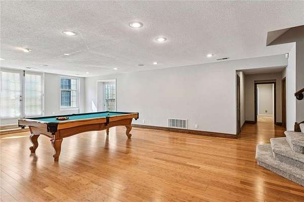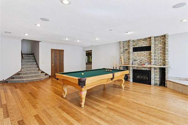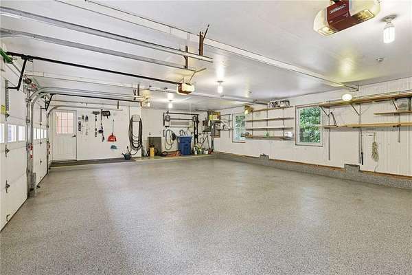 The finished lower level is an entertainer's dream, featuring a full second kitchen, game room, family room, two additional bedrooms, a spa-like bathroom with space for a massage table, and a dedicated fitness room. Generous storage and workshop areas are also included. Heated flooring throughout the home includes a mix of hardwood, tile, and brand-new carpet, ensuring warmth and comfort in every room.